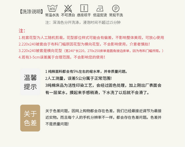 3、通州区市场监督局友情提醒,近期涉及到床上用品不褪色不掉毛不缩水的投诉和以世界知名品牌图案为面料的床品举报较多。请各商家自检自查,对照整改或进行下架处理。
