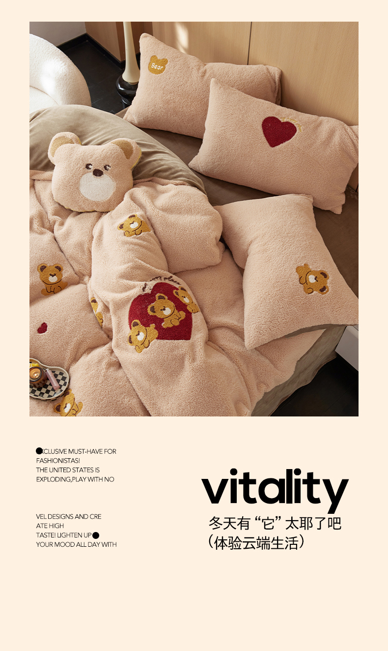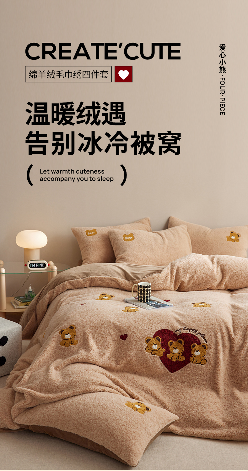 当前位置: 91家纺网 > 商品网购 > 床品套件 > 四件套 > 其它四件套 > (总)安莱生活 2024新款绵羊绒毛巾绣四件套