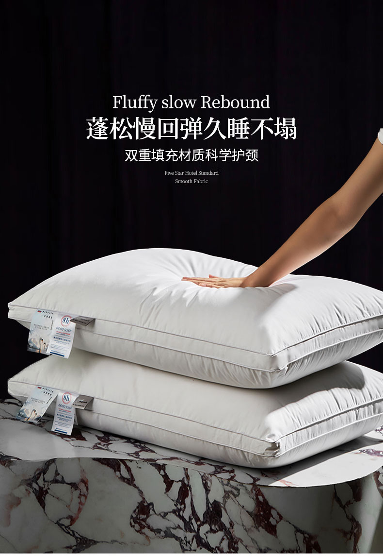 明羽羽绒 2024新款全棉酒店羽绒枕头枕芯白鹅绒枕芯枕头 白色高枕填充1450g