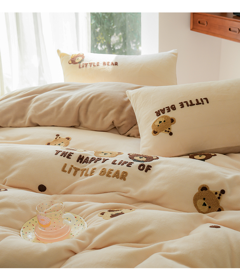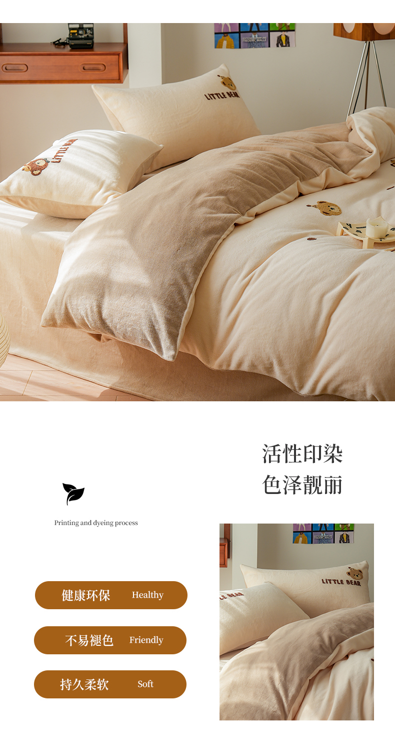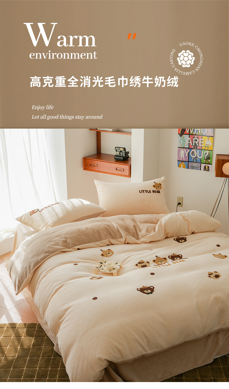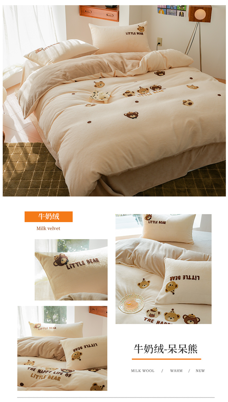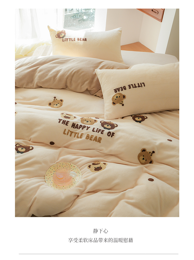 当前位置: 91家纺网 > 商品网购 > 床品套件 > 四件套 > 牛奶绒四件套 > 沐晴家纺 2024秋冬新品高克重牛奶绒拼色毛巾绣卡通绣花款四件套 呆呆熊