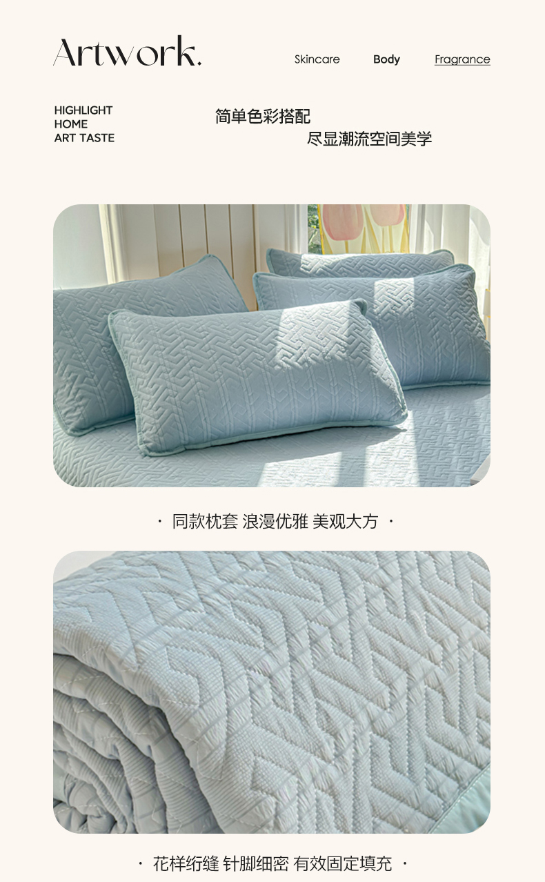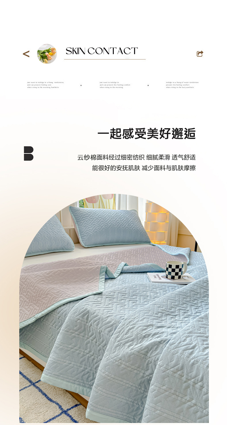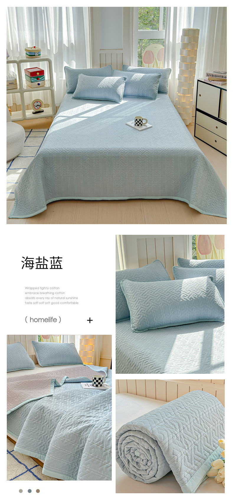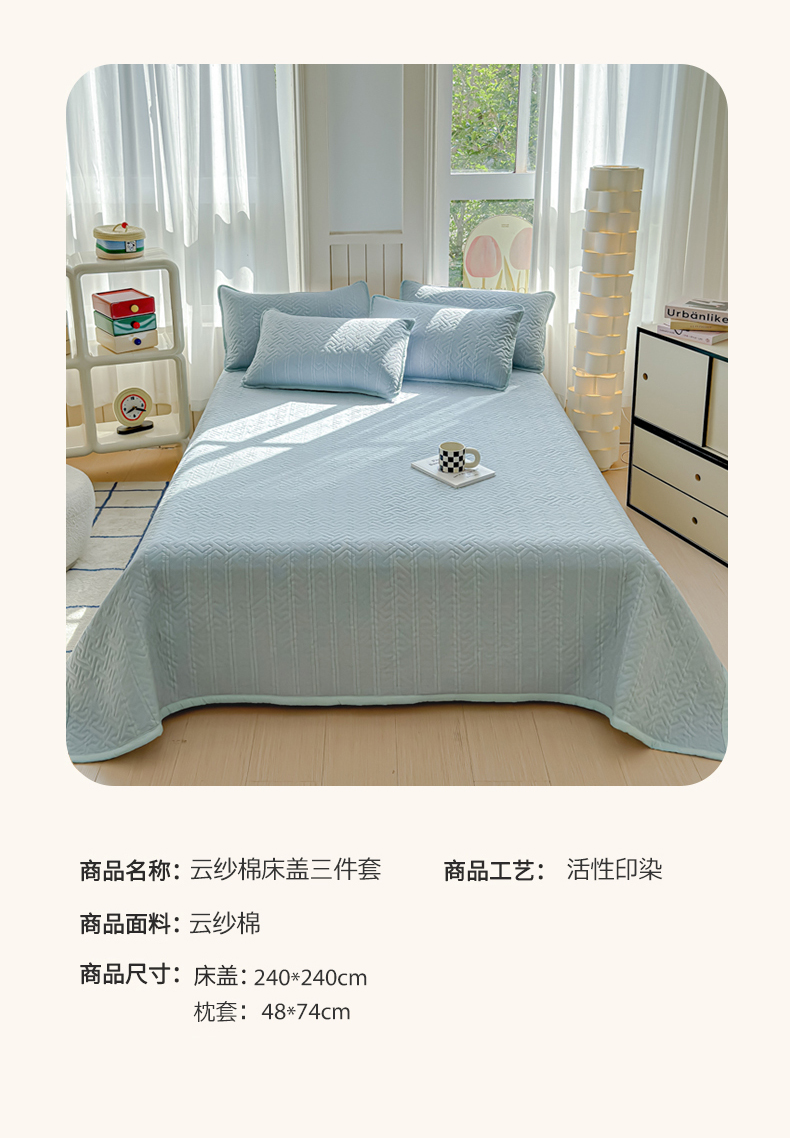 商品名称:芯元素 2024新款云纱棉床盖三件套 海盐蓝
