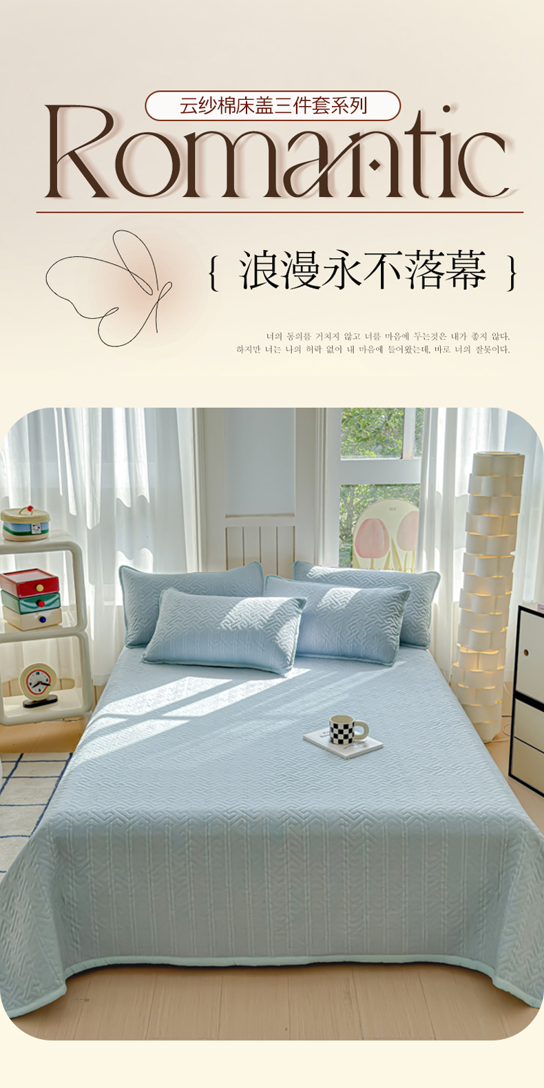 (总)芯元素 2024新款云纱棉床盖三件套,暗香,海盐蓝,花海,瑾年,青草绿,绅士咖,甜心兰,樱花粉
