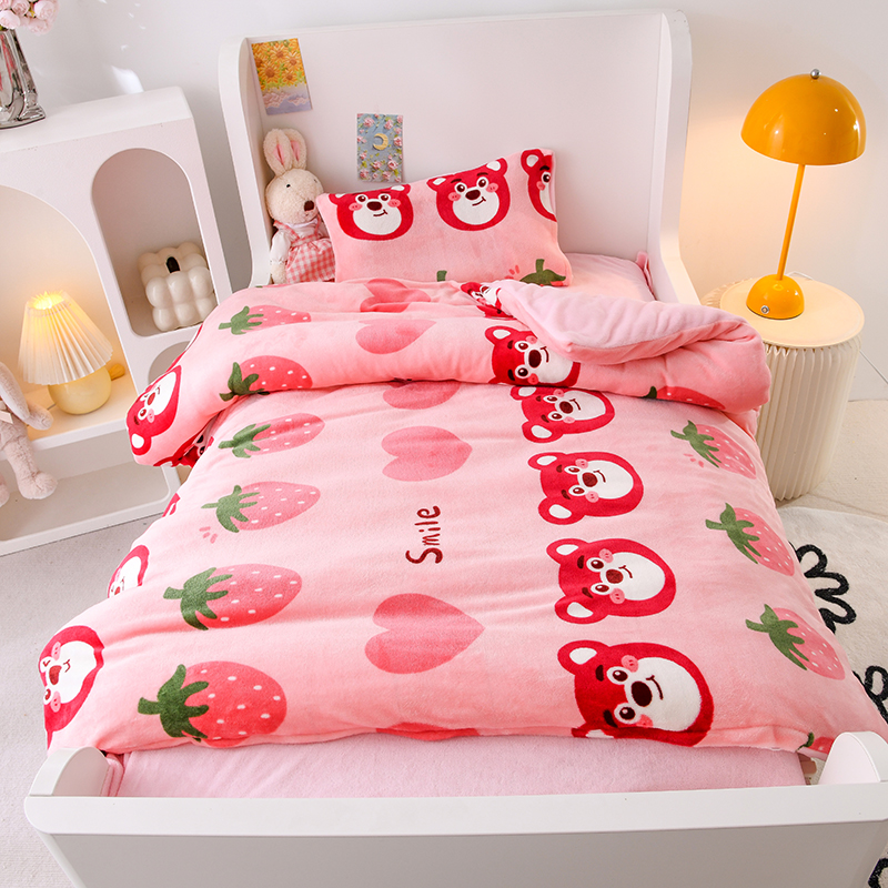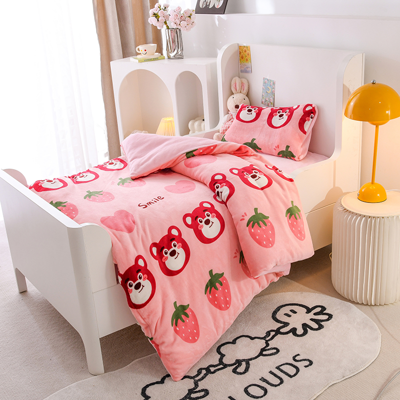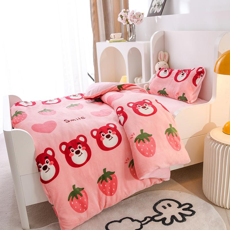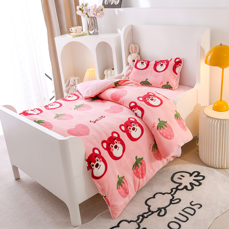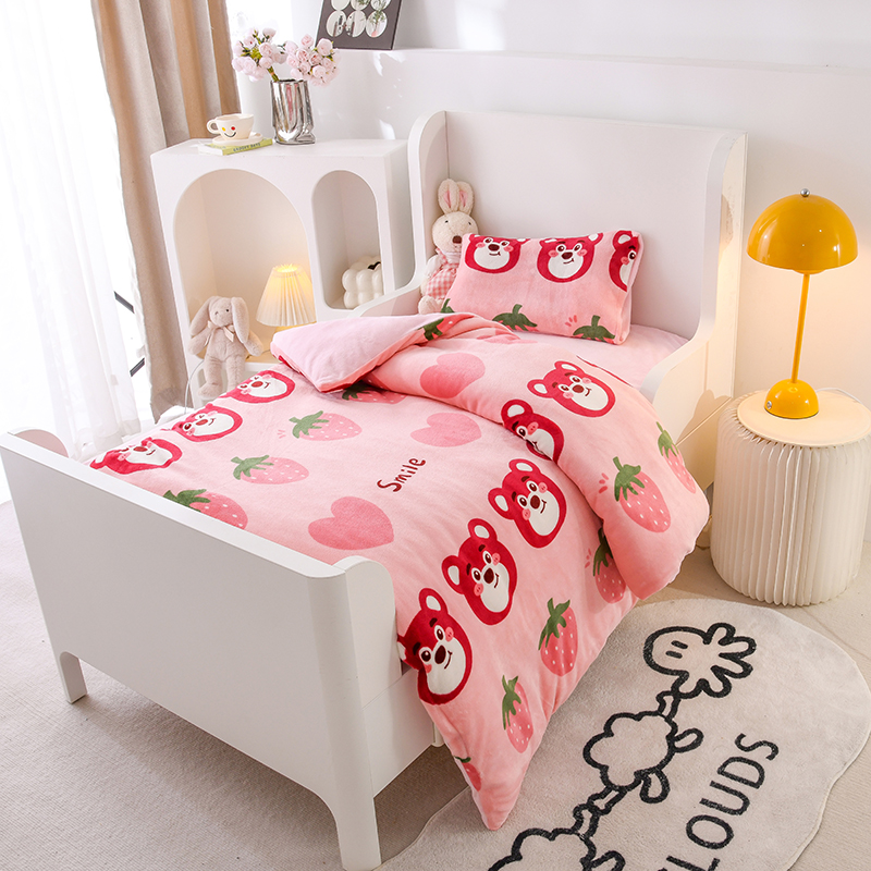 (总)萌宝家纺 2025新款加厚儿童牛奶绒被套幼儿园保暖三件套,草莓小熊,蛋糕兔子,调皮熊猫,粉色小猫,卡通草莓,可爱草莓,恐龙奇奇,没烦恼,奶牛,汽车-黄,汽车-蓝灰,小企鹅,小熊猫,小熊奶咖,紫色精灵