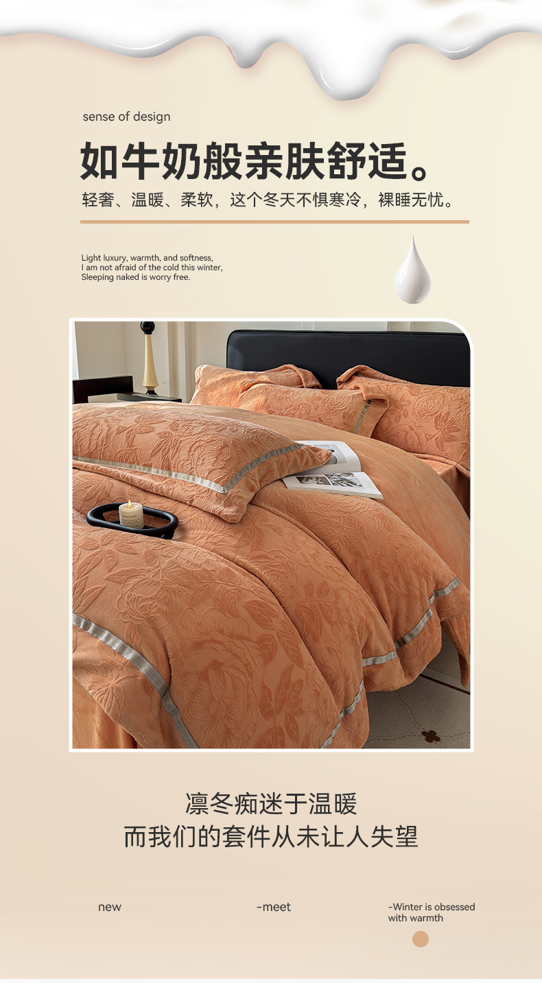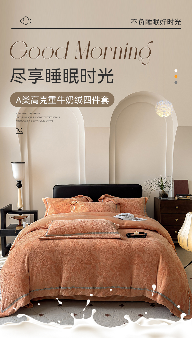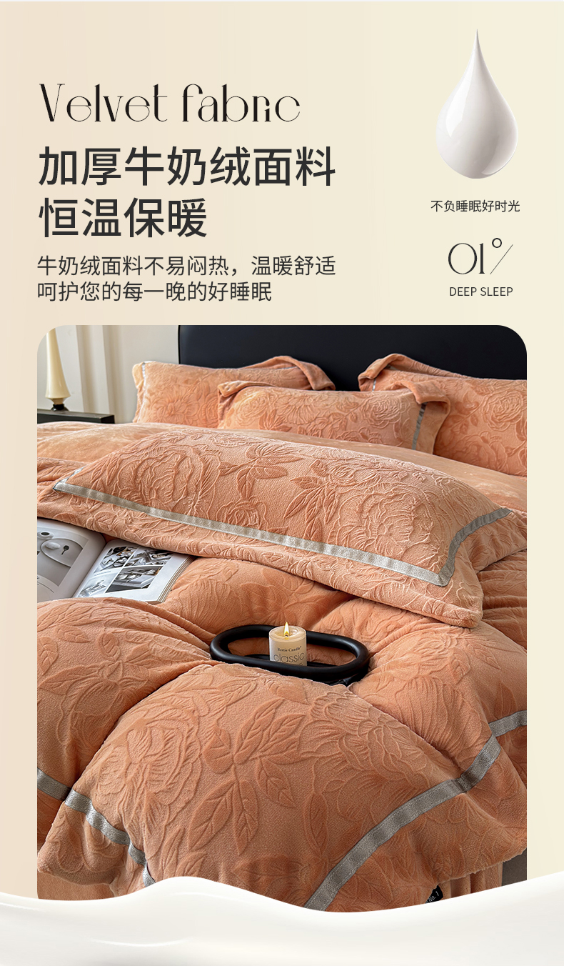 (总)家居1号家纺 2025新款230克全消光瑞丽牛奶绒烂花四件套(控价标准258加大278 会员优惠10元),瑞丽-卡其,瑞丽-苹果绿,瑞丽-绅士灰,瑞丽-温馨蓝,瑞丽-雅粉,瑞丽-优雅紫