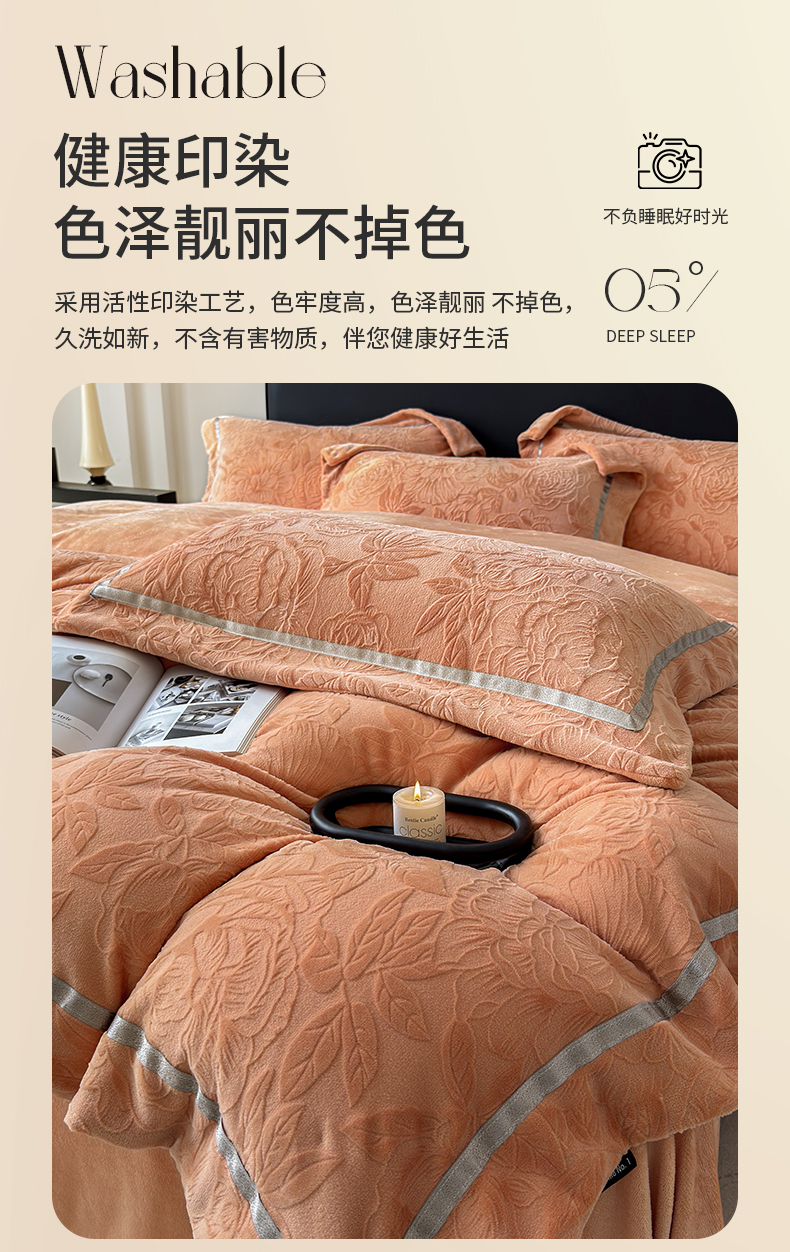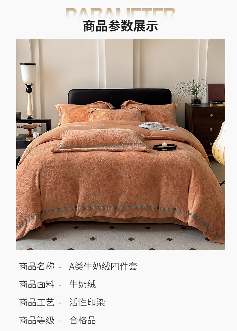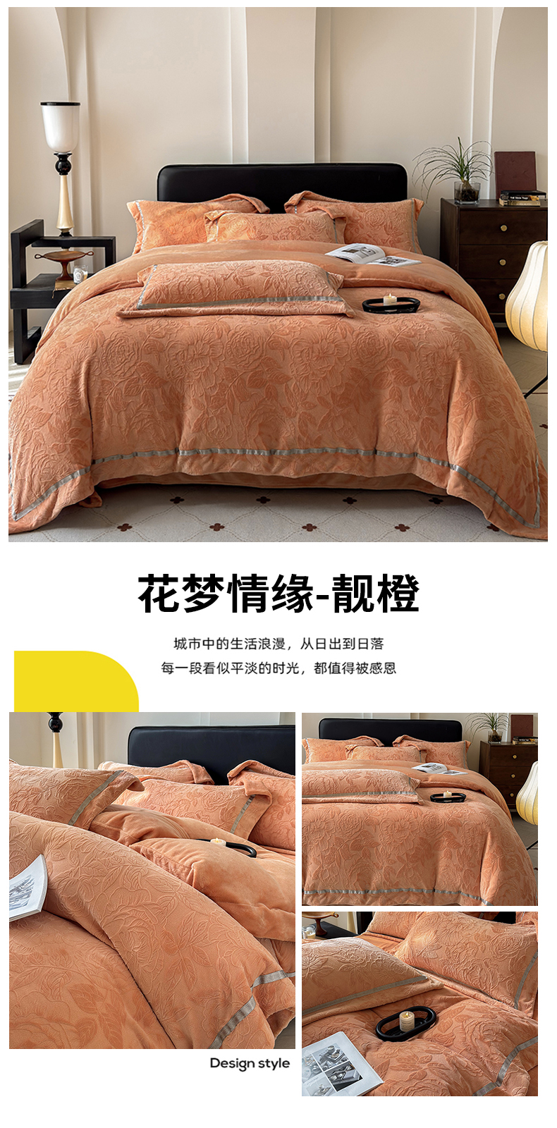 商品名称:家居1号家纺 2024新款230克牛奶绒四件套-花梦情缘 花梦情缘-靓橙