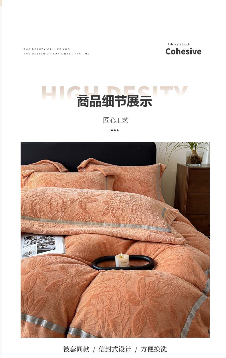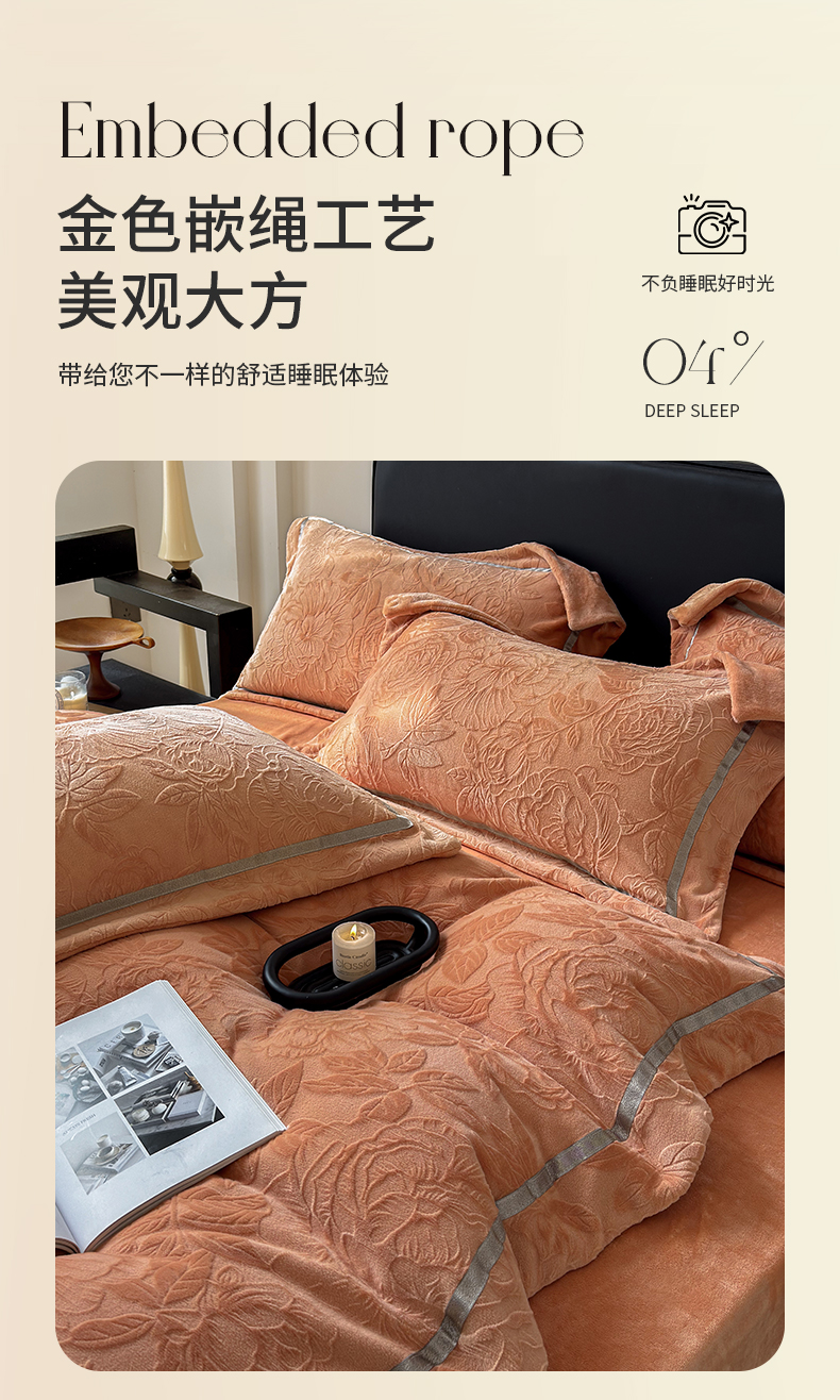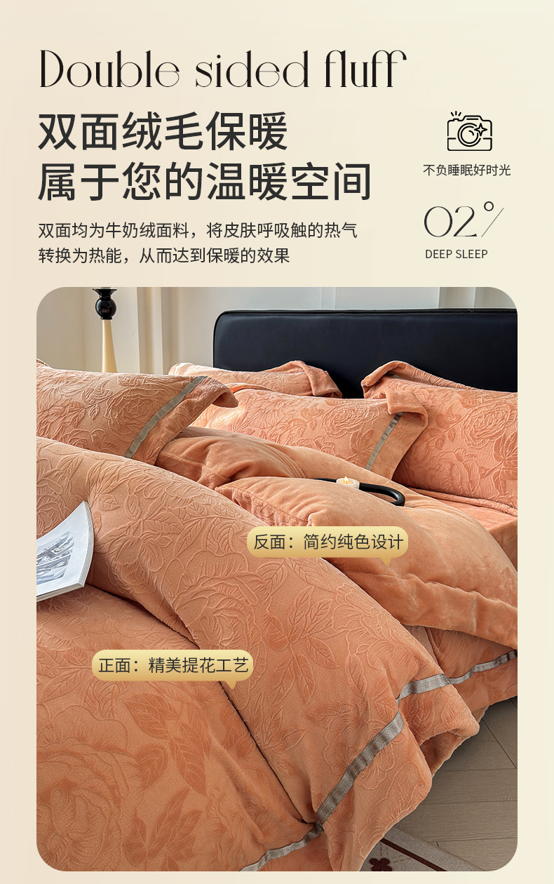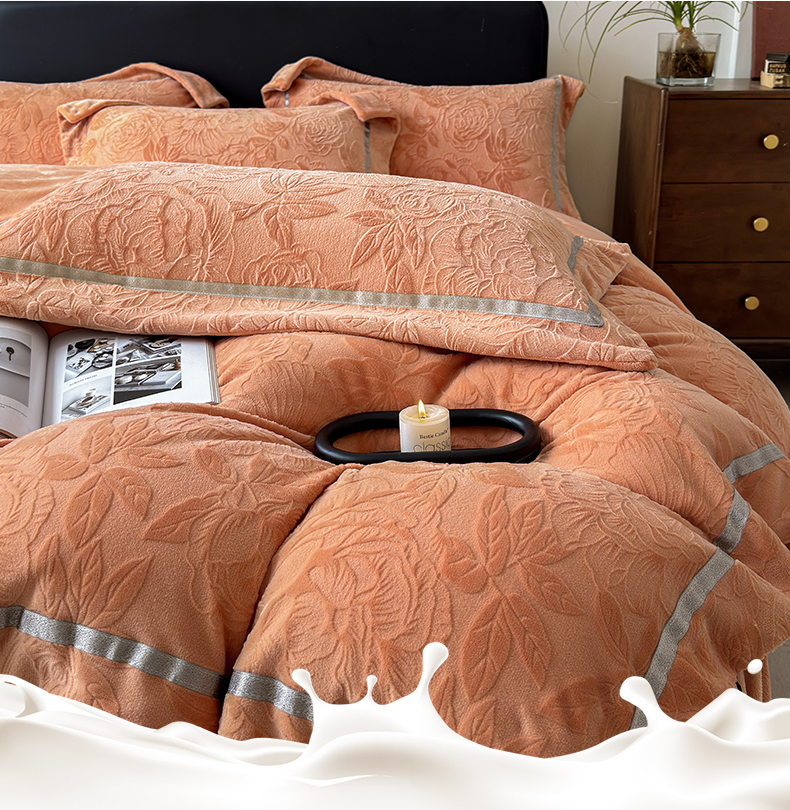 商品名称:家居1号家纺 2024新款230克牛奶绒四件套-花梦情缘 花梦情缘-靓橙