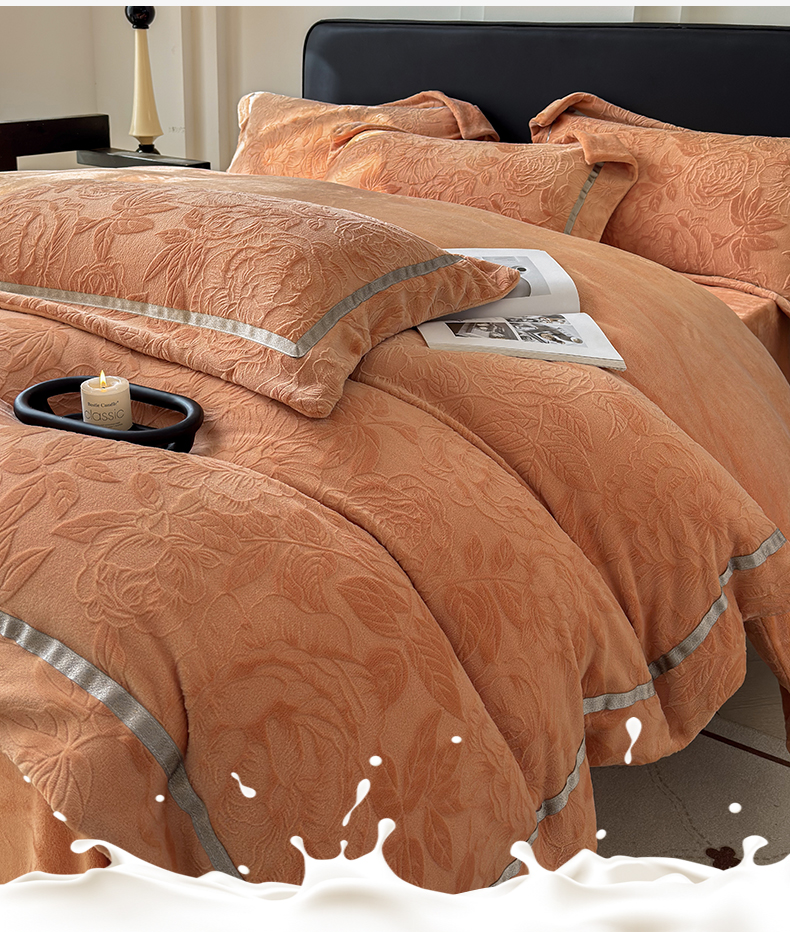 家居1号家纺 2024新款230克牛奶绒四件套-花梦情缘 花梦情缘-靓橙