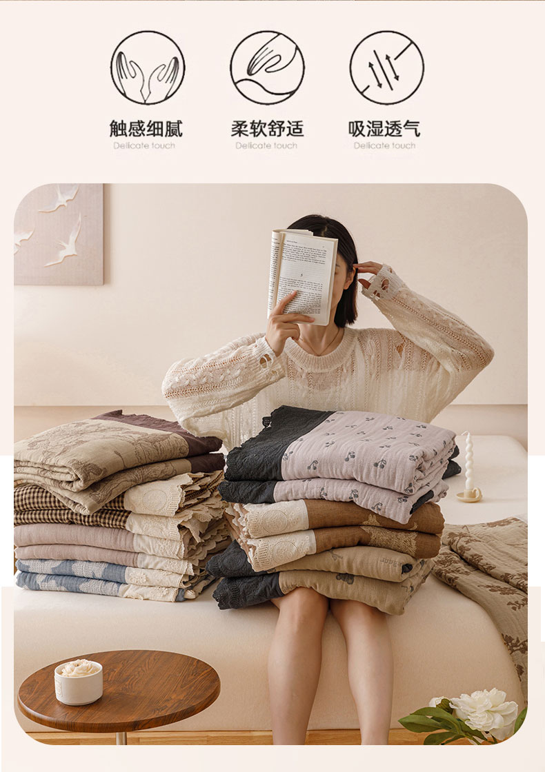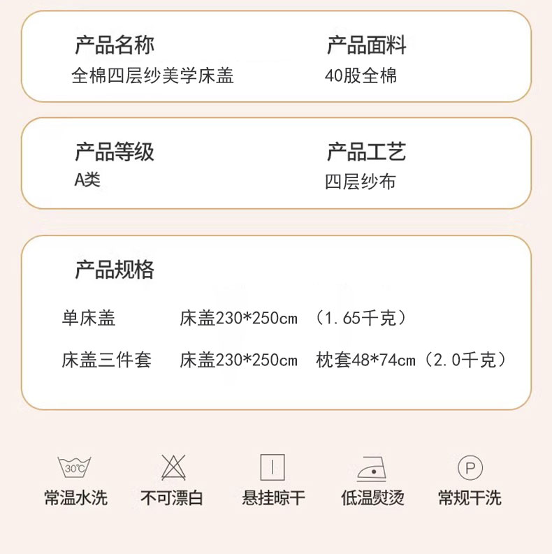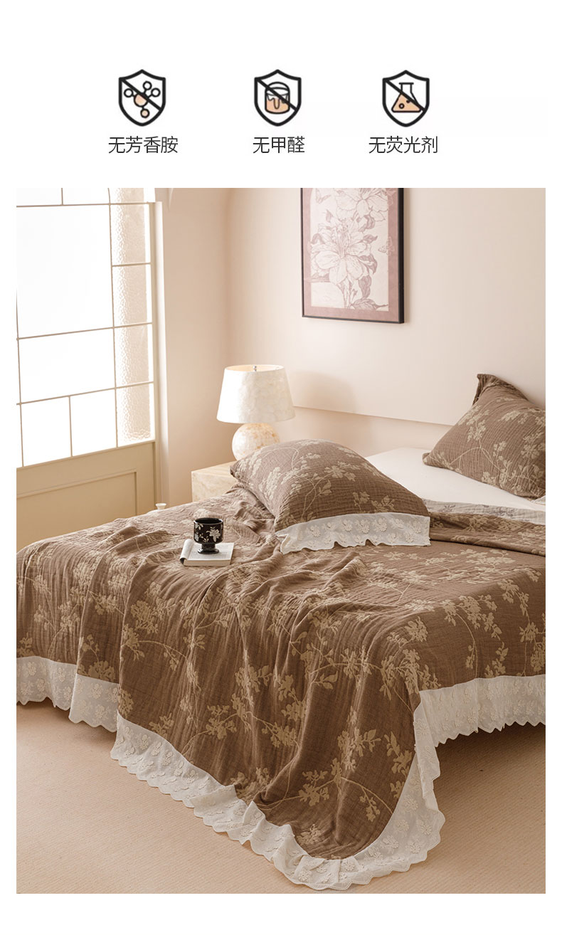 商品名称:麻依 2024新款全棉四层纱美学床盖 花之苑-咖