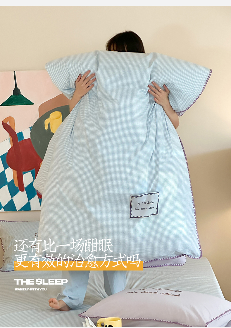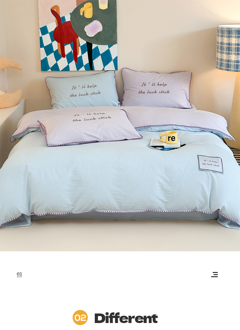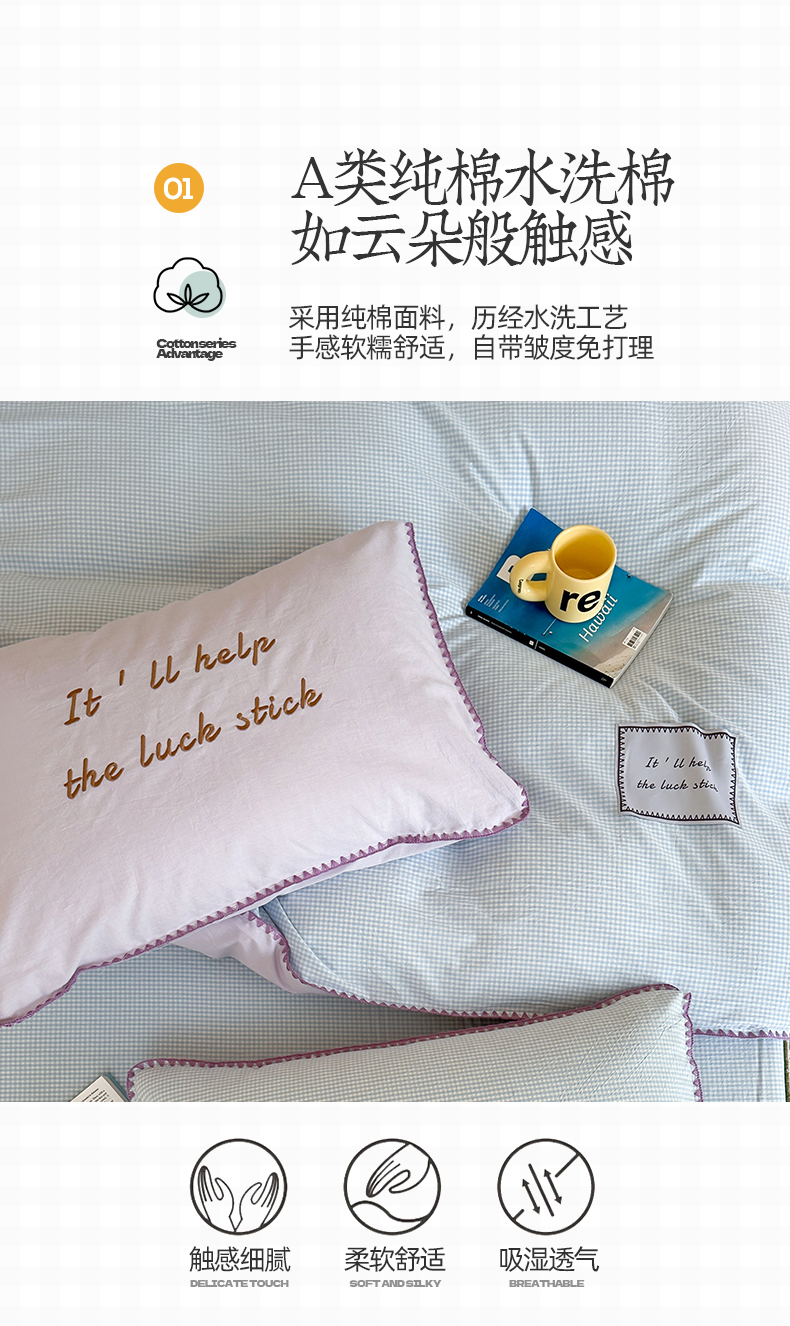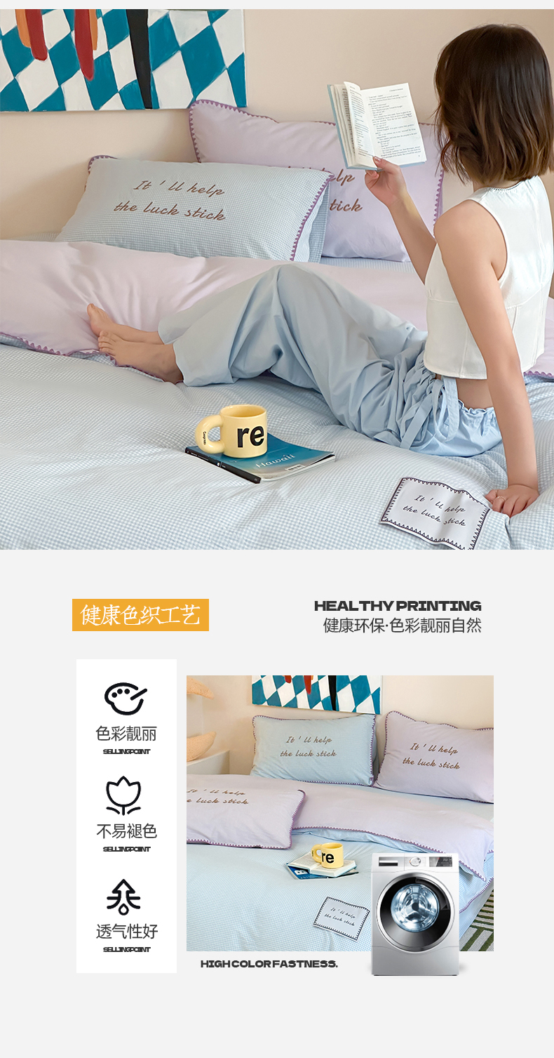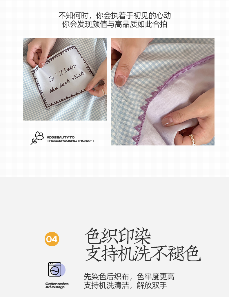 当前位置: 91家纺网 > 商品网购 > 床品套件 > 四件套 > 水洗棉四件套 > 桃子家居 2025新款A类ins纯棉色织水洗棉三角针贝壳工艺撞色织标刺绣系列四件套 棉三角针-S芋泥蓝格