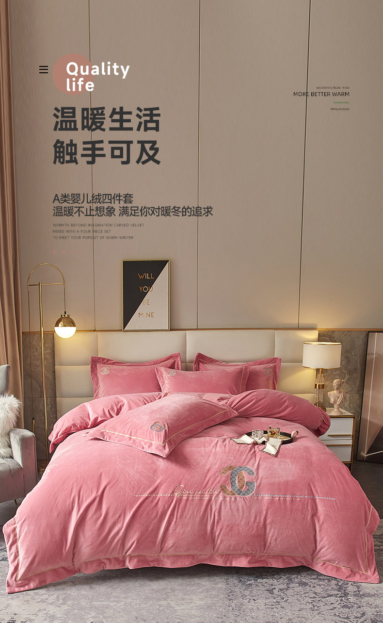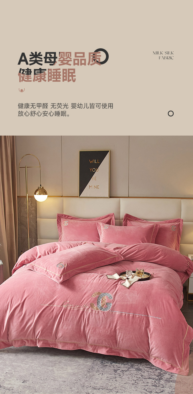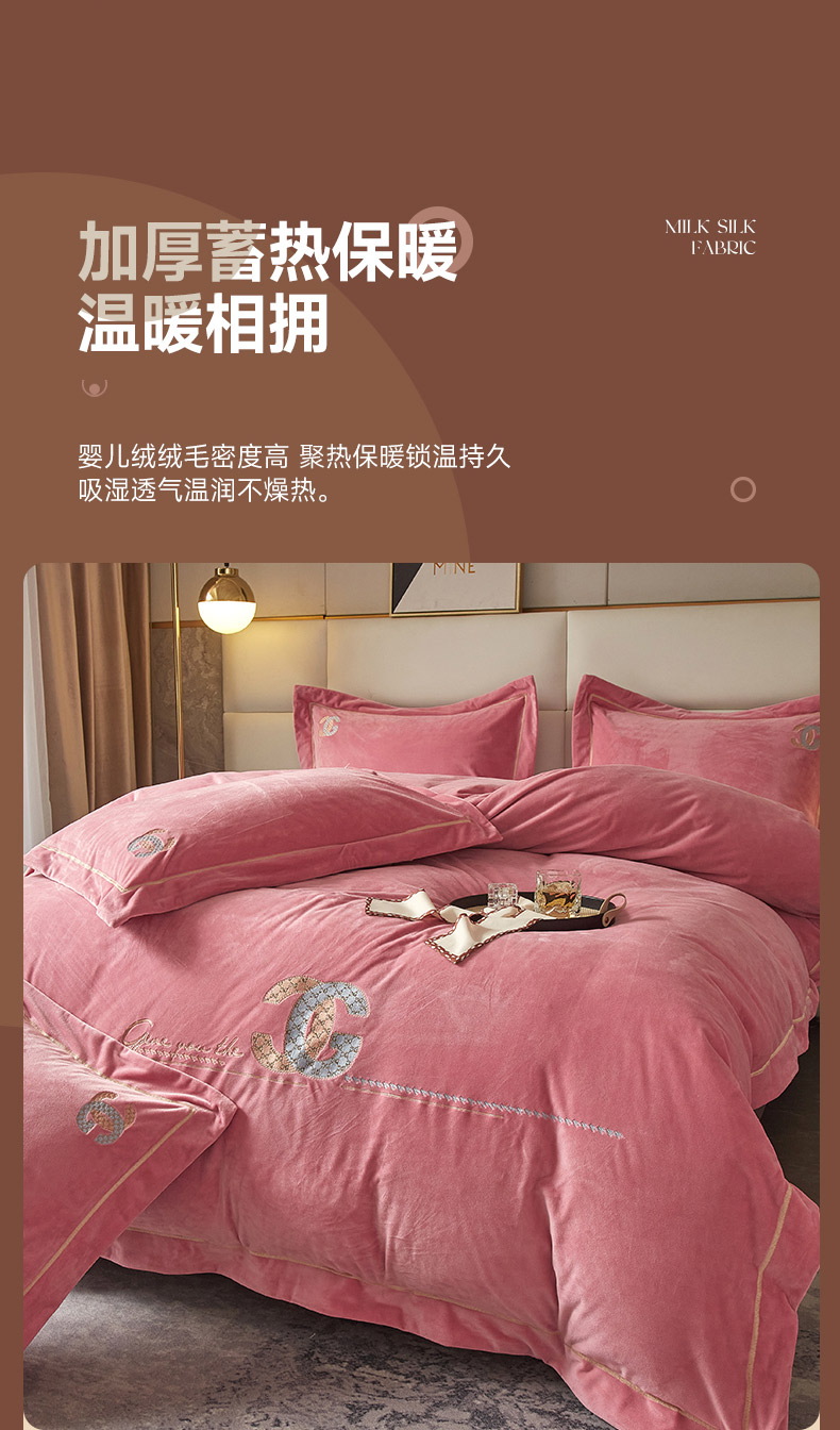 当前位置: 91家纺网 > 商品网购 > 床品套件 > 四件套 > 其它四件套 > 库里梦家纺 2024新款A类宽边婴儿绒刺绣四件套-凯瑟琳 凯瑟琳-豆沙