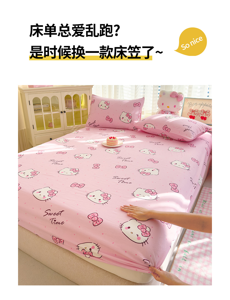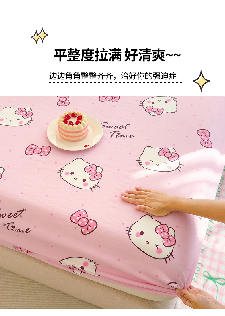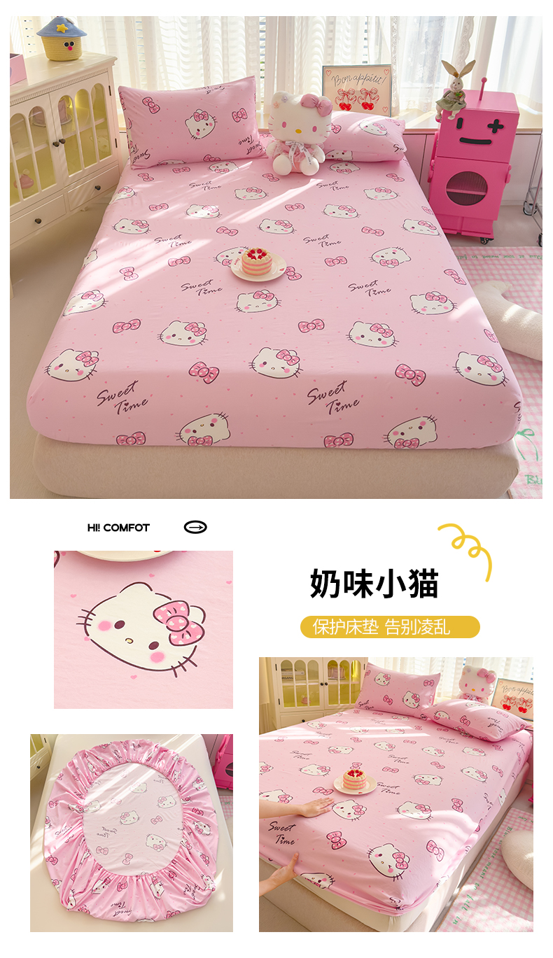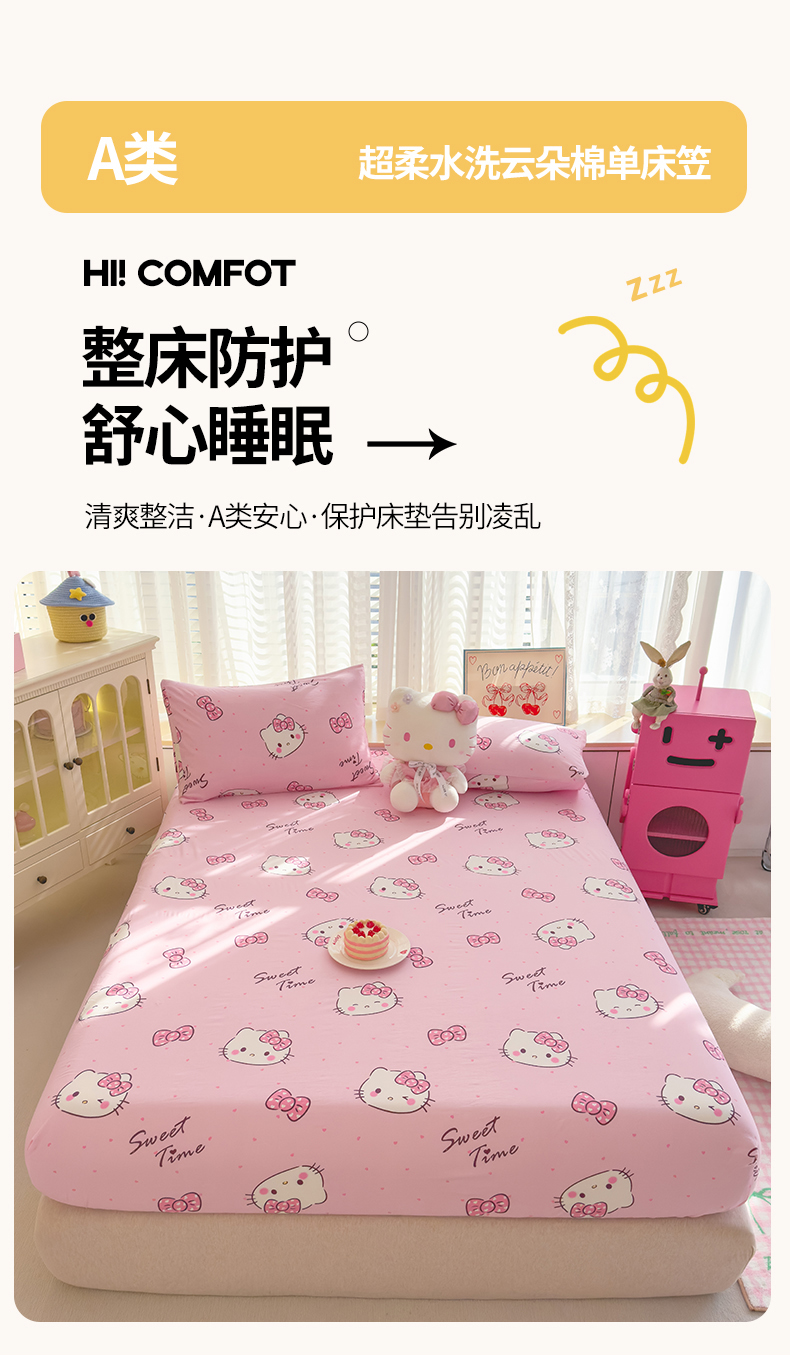 宏源家纺2024新款A类高克重超柔水洗云朵棉单床笠 奶味小猫