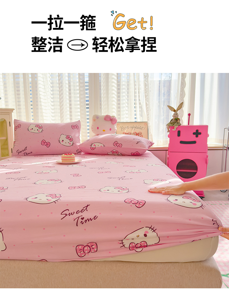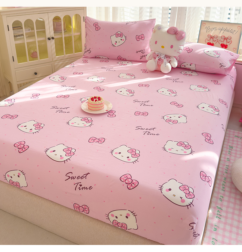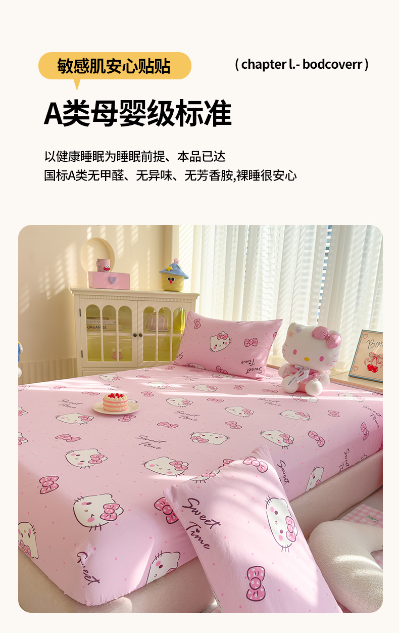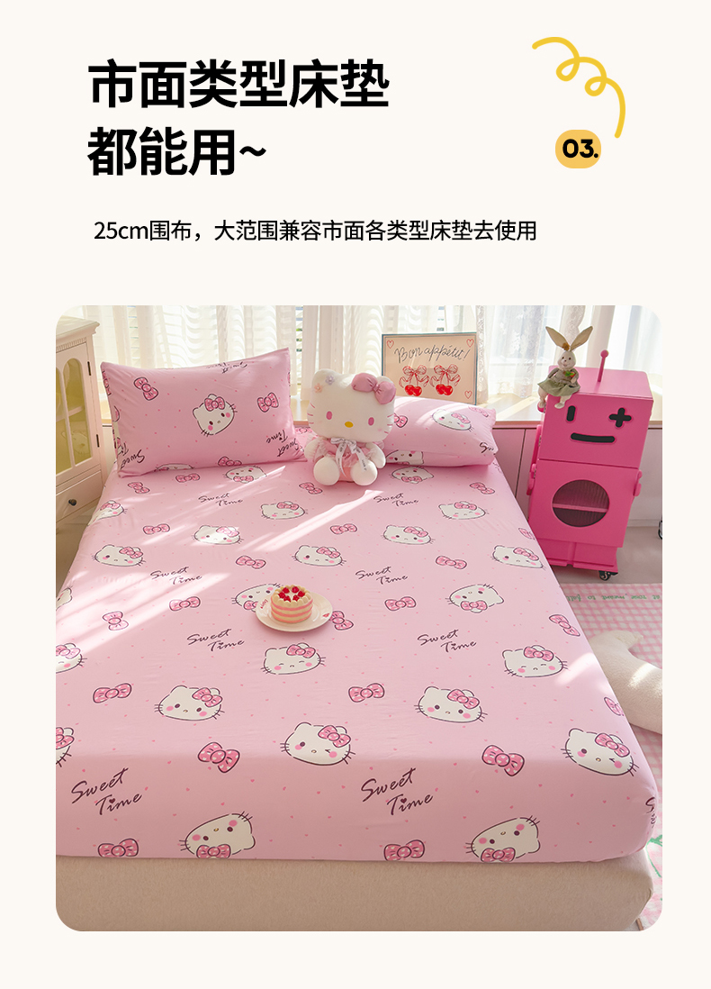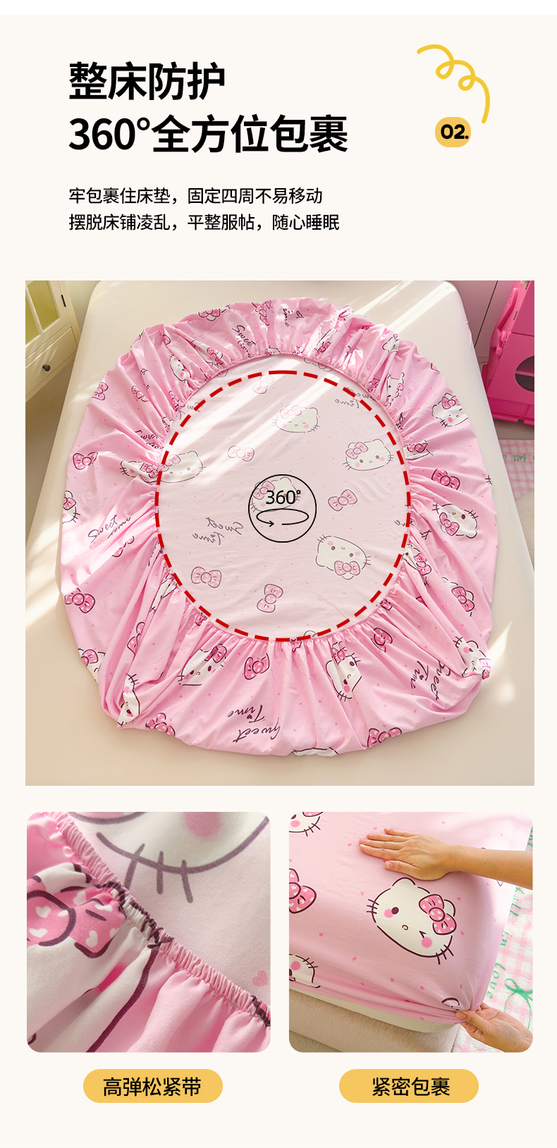 宏源家纺2024新款A类高克重超柔水洗云朵棉单床笠 奶味小猫