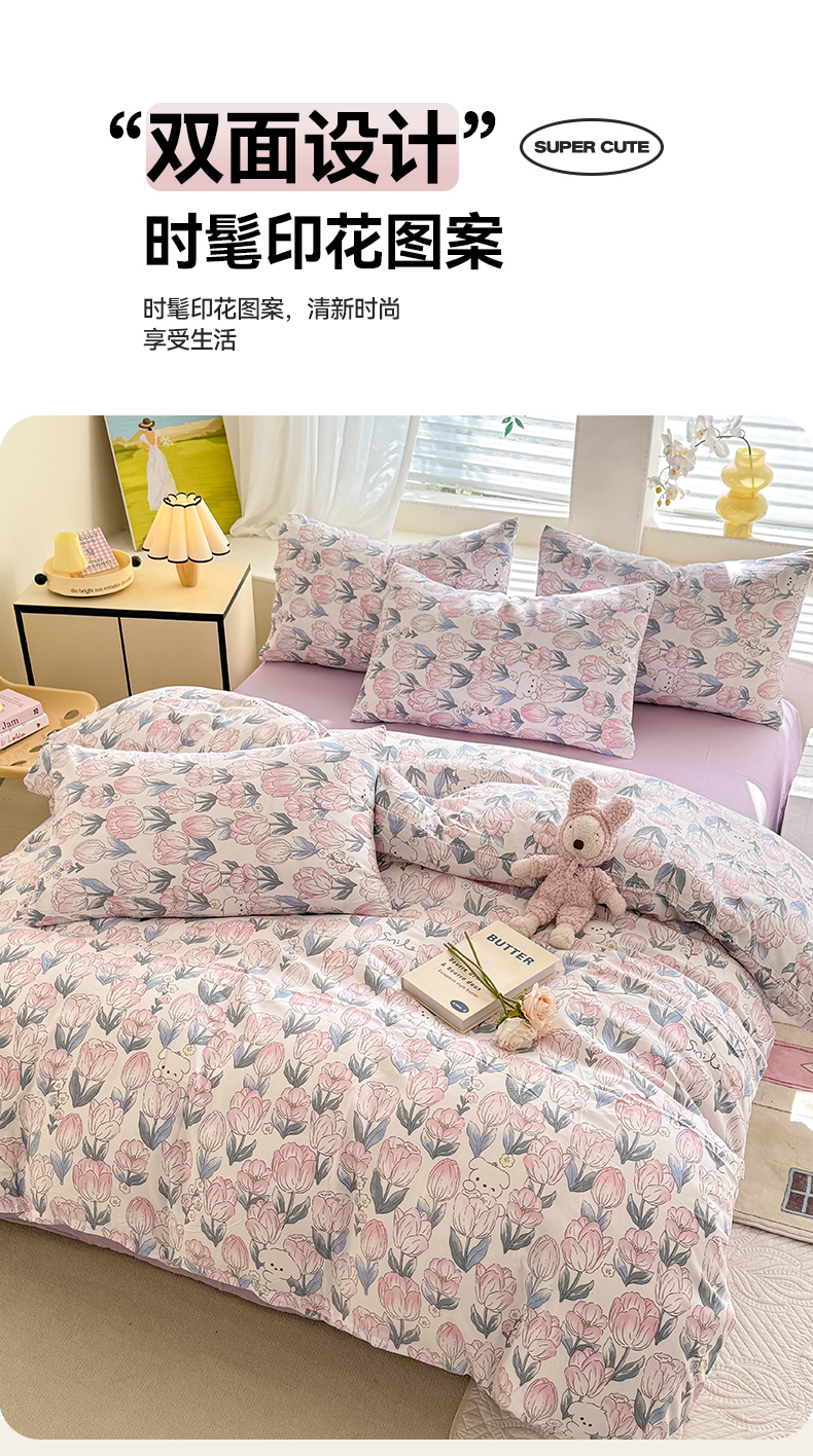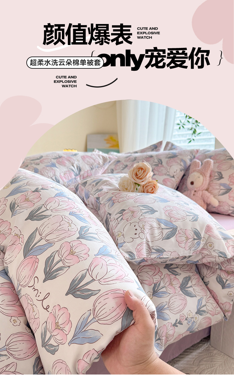 多品家纺 2025新款超柔水洗软糯云朵棉单被套 郁金香仔仔