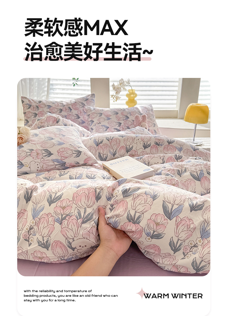 • 91家纺网 家纺一手货源 找家纺 多品家纺 2025新款超柔水洗软糯云朵棉单被套 郁金香仔仔