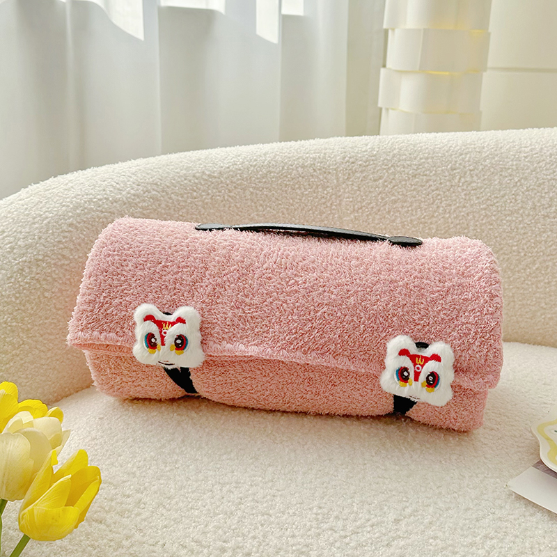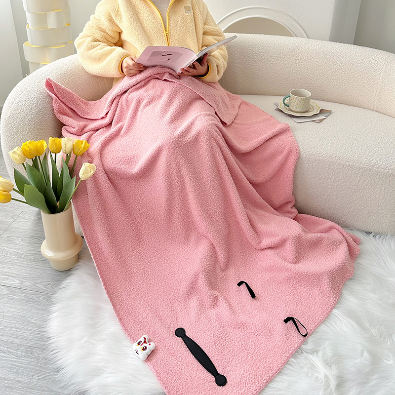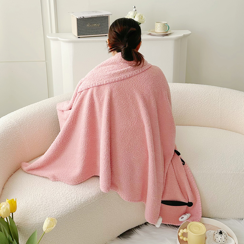 多乐家纺 2024新款云朵绒多功能盖毯 粉-狮头白