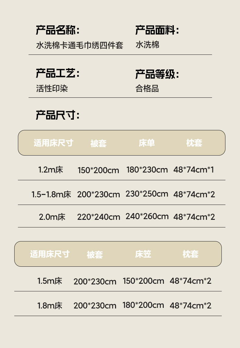 (总)雅居纺家纺 2026新款全棉双层纱毛巾绣四件套,蛋糕猫咪,红苹果小狗,萌宠甜品,早安兔兔