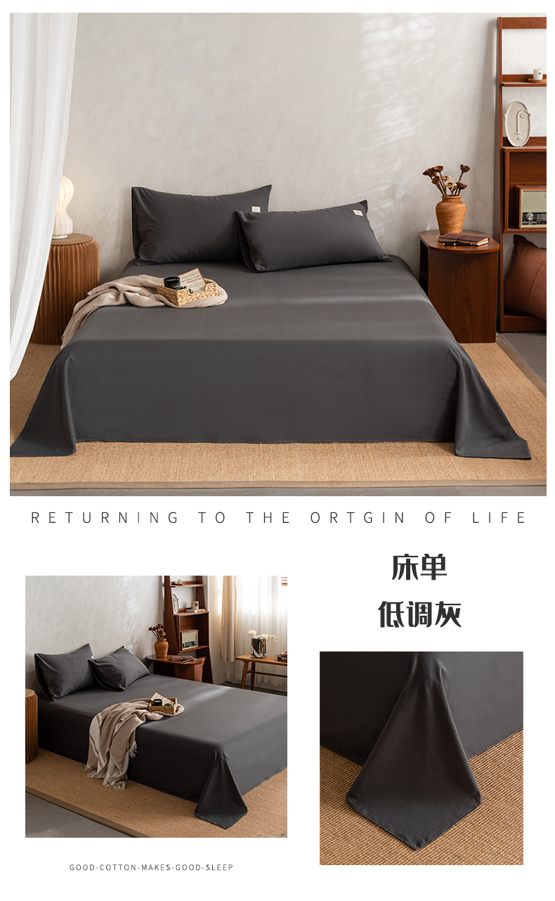 商品名称:雅居纺家纺 2025新款全棉素色水洗棉单床单 低调灰
