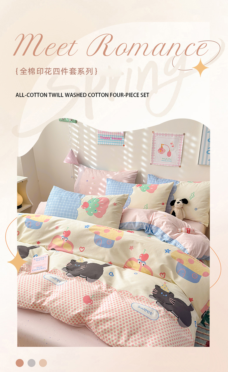 (总)曼之夏 2025新款全棉纯棉印花四件套,豹纹猫咪,笨笨象,缤纷乐园,草莓蛋糕,丛间密语,点点小腊肠,冬日可可狗,告白熊,格子小狗,快乐熊猫,萌萌哒,蜜糖,苹果熊仔,奇思妙想,圣诞星语,兔兔甜心,线团小猫,小熊序曲,心动狗狗,心心狗,星星凯蒂猫,幸运猪猪