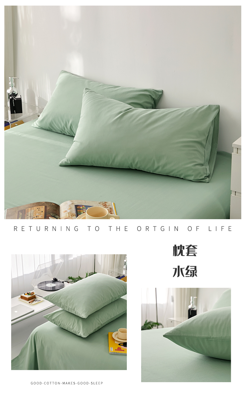 商品名称:雅居纺家纺 2025新款全棉素色水洗棉单枕套 水绿