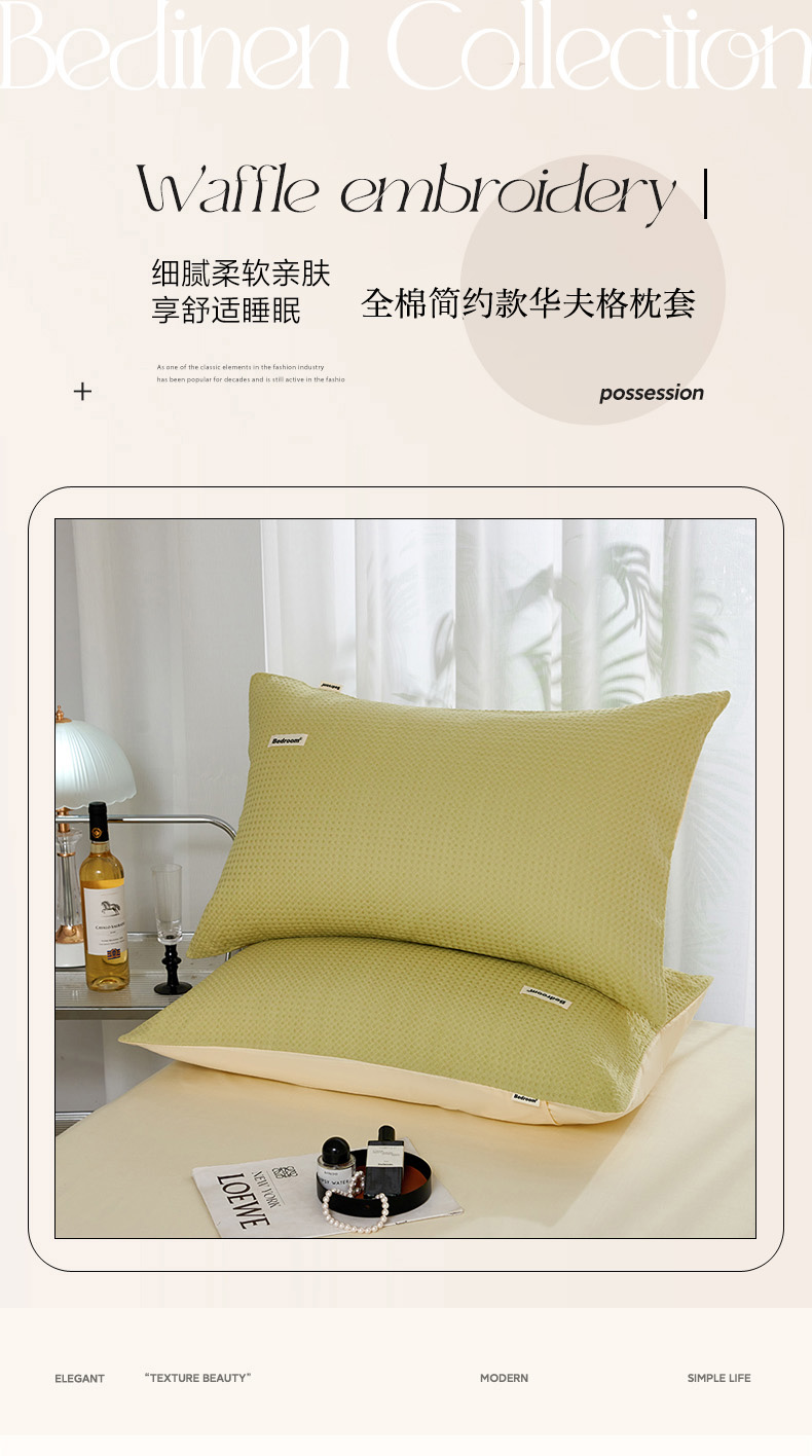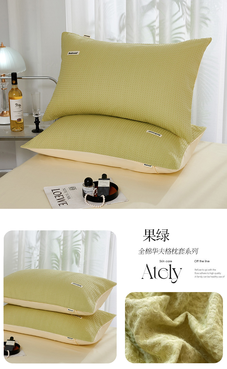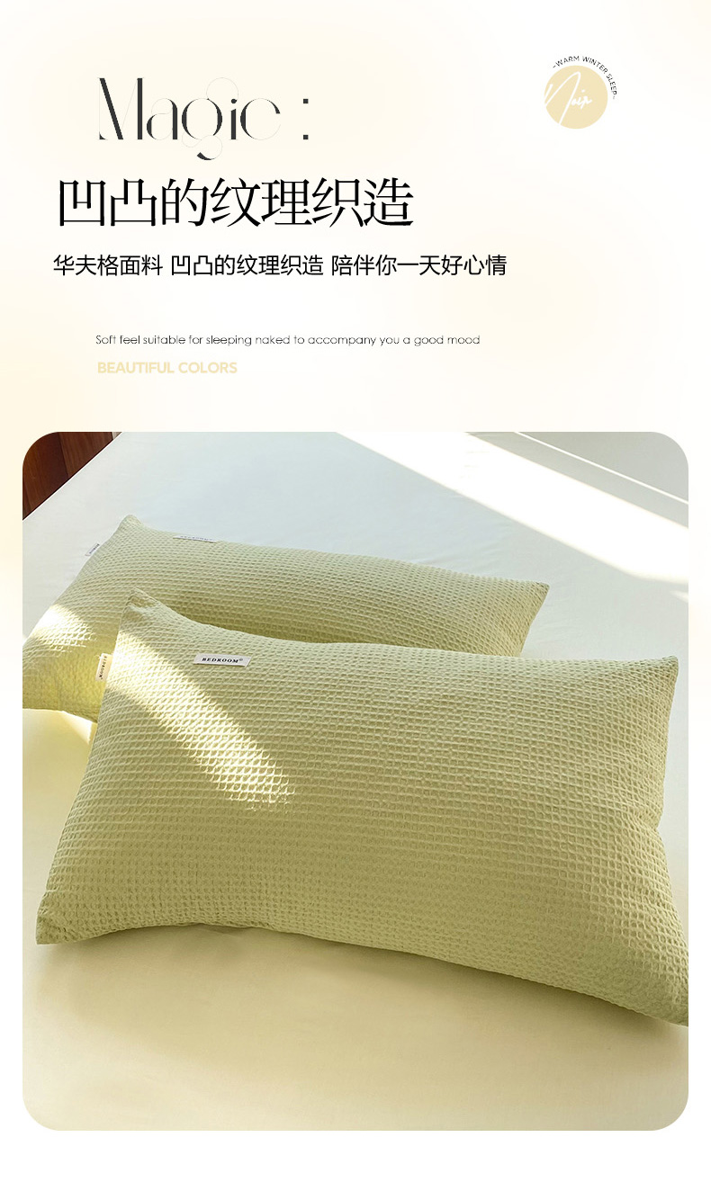 商品名称:眠博士 2025新款简约时尚全棉华夫格枕套 简约款-果绿