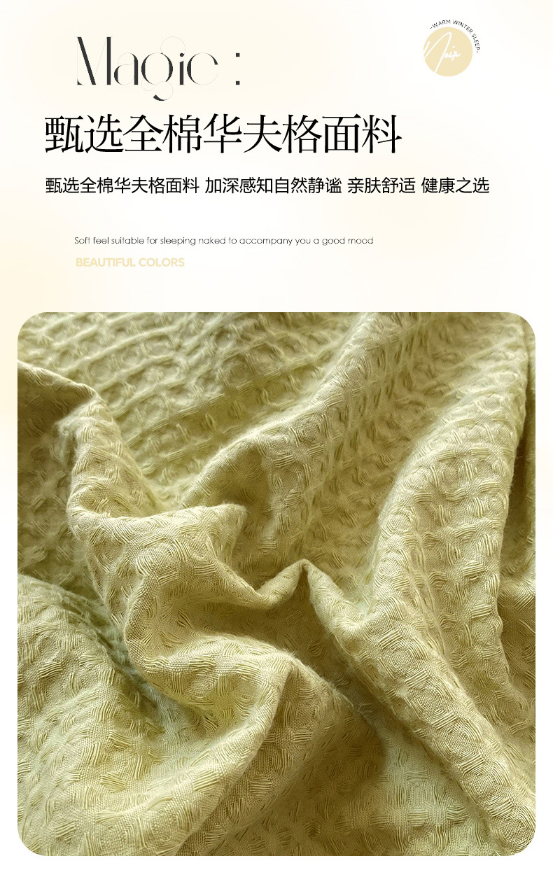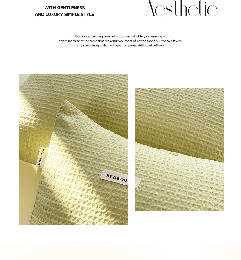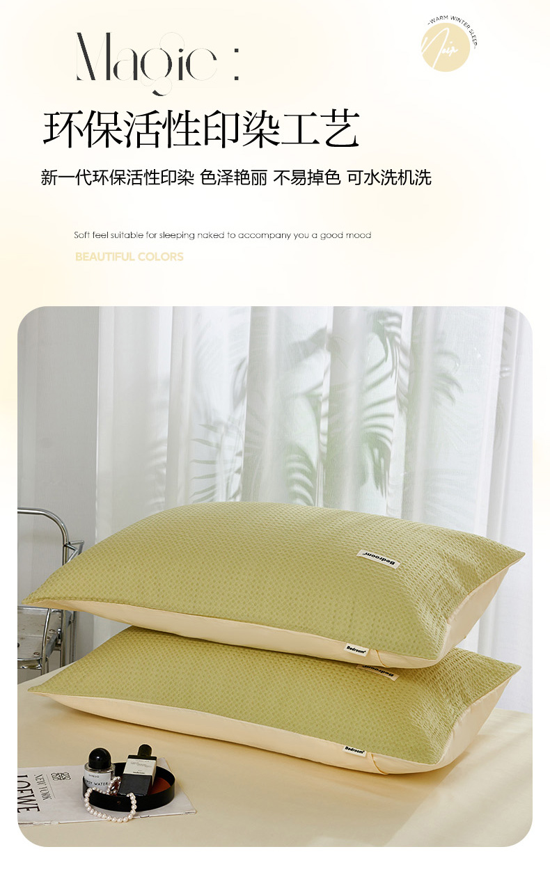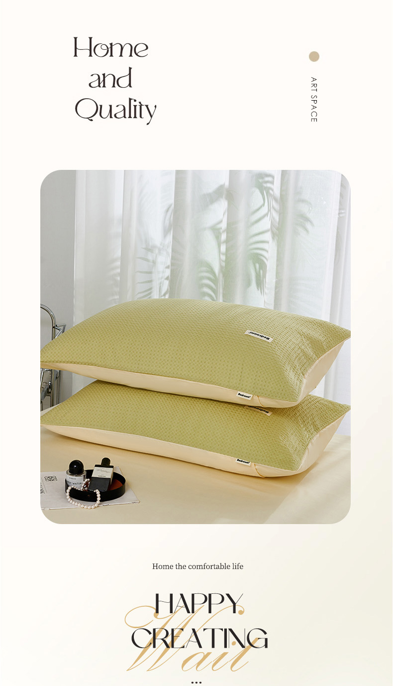 商品名称:眠博士 2025新款简约时尚全棉华夫格枕套 简约款-果绿