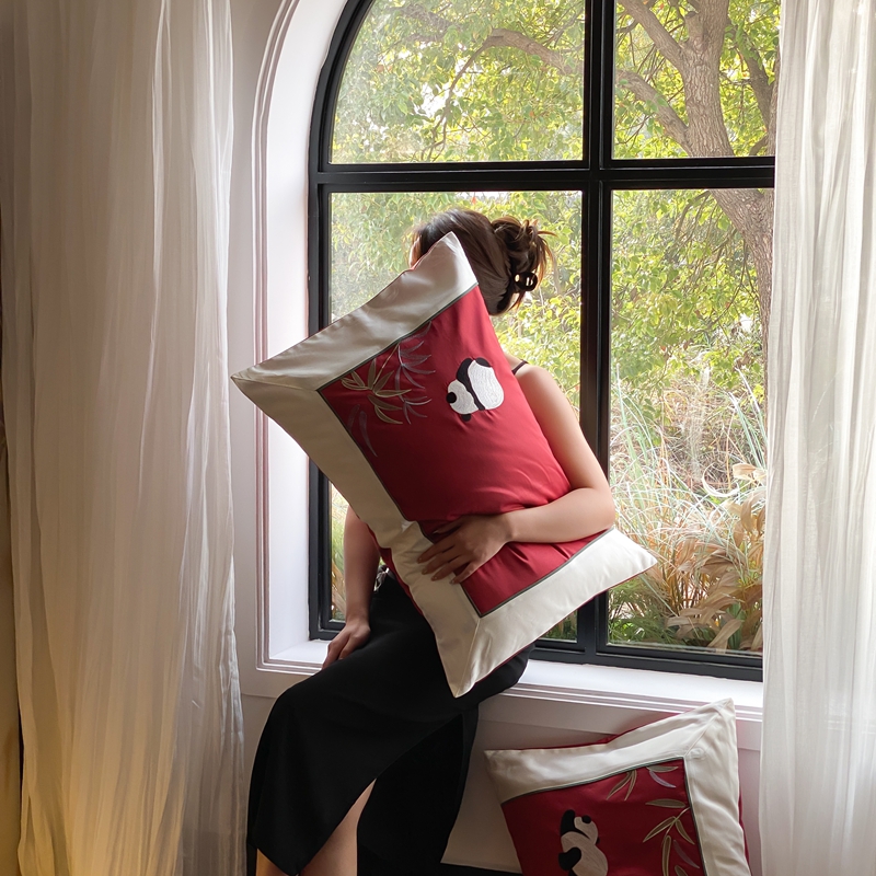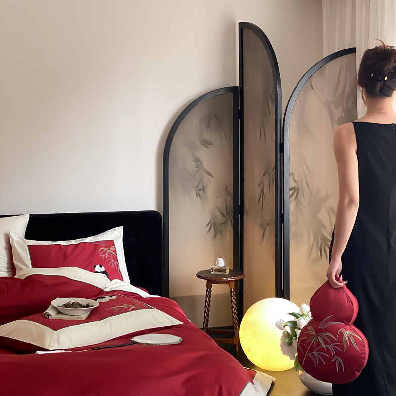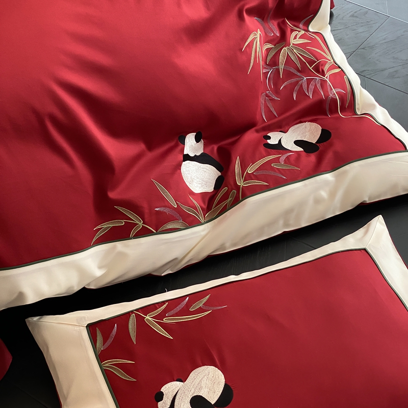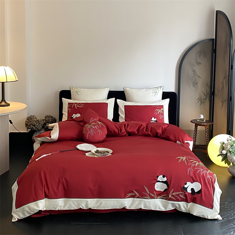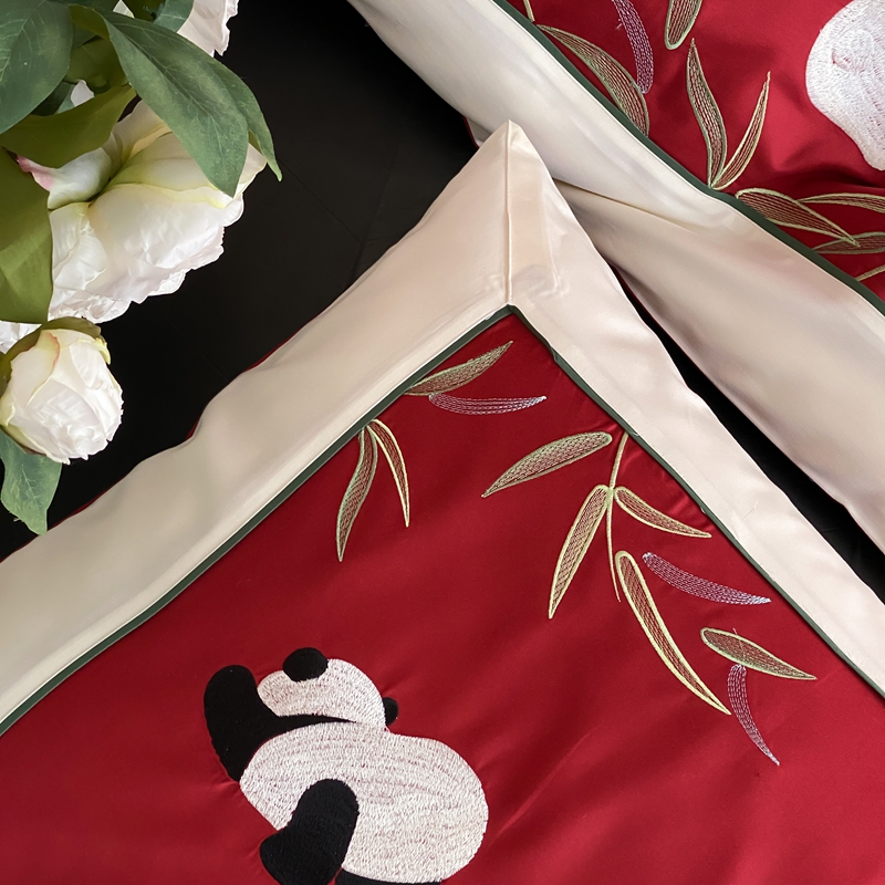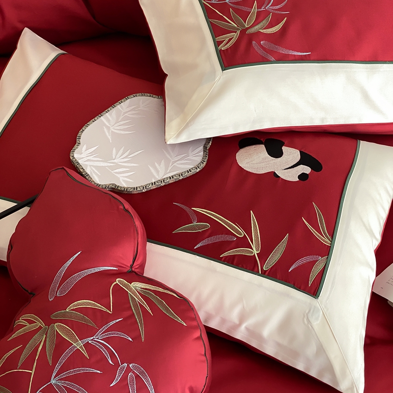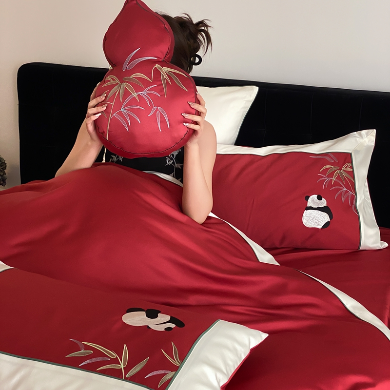 MIU缪家居 2025新款100支全棉磨毛四件套-熊猫与竹 熊猫与竹-红色