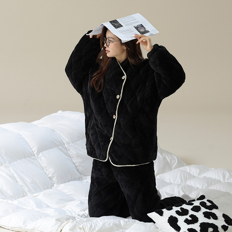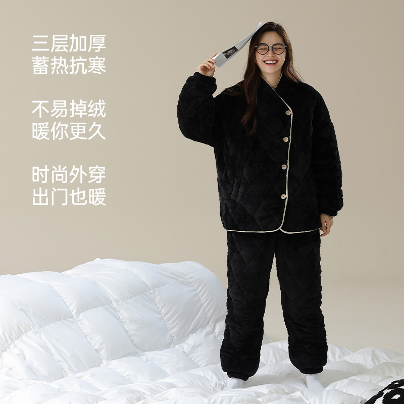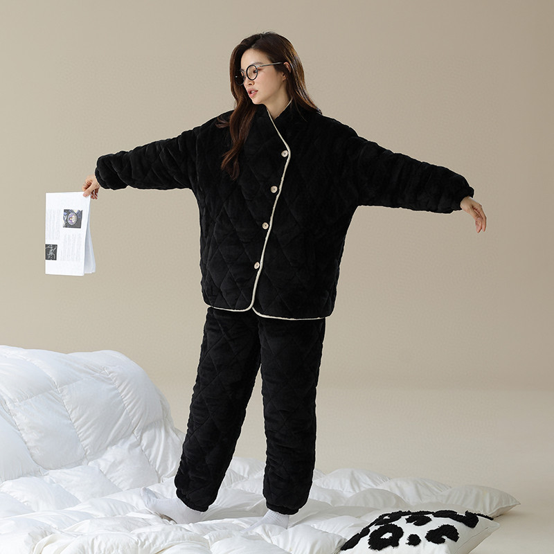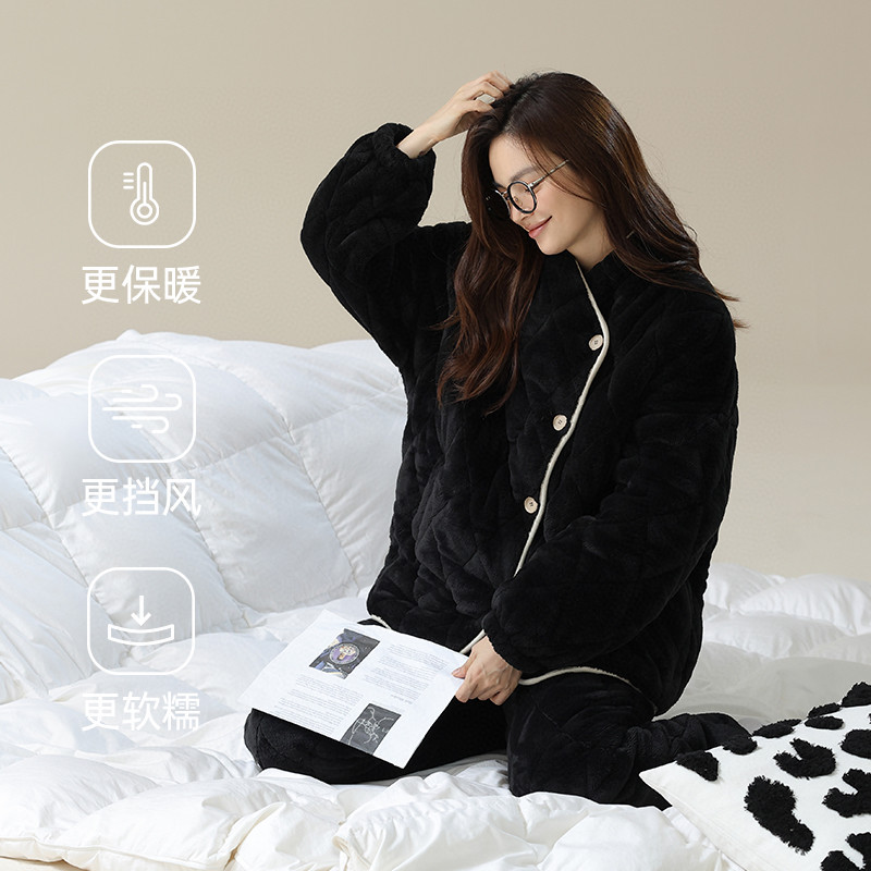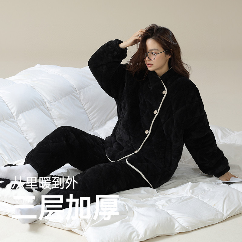 当前位置: 91家纺网 > 商品网购 > 居家日用 > 睡衣/家居服套装 > (总)2025新款夹棉立领女款黑色