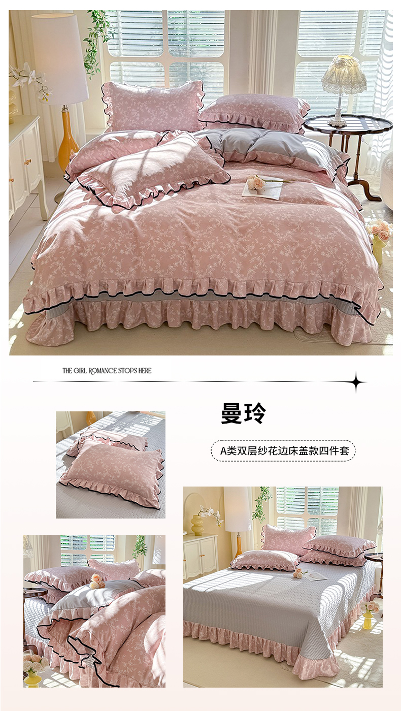 韩约家纺 2025新款1针织双层纱花边款床盖四件套 曼玲(花边款)