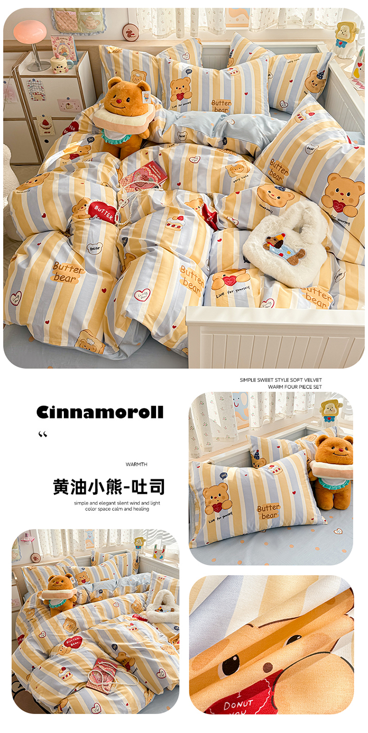 呗旺鹿 2025新款全棉13372黄油小熊系列四件套 黄油小熊-吐司