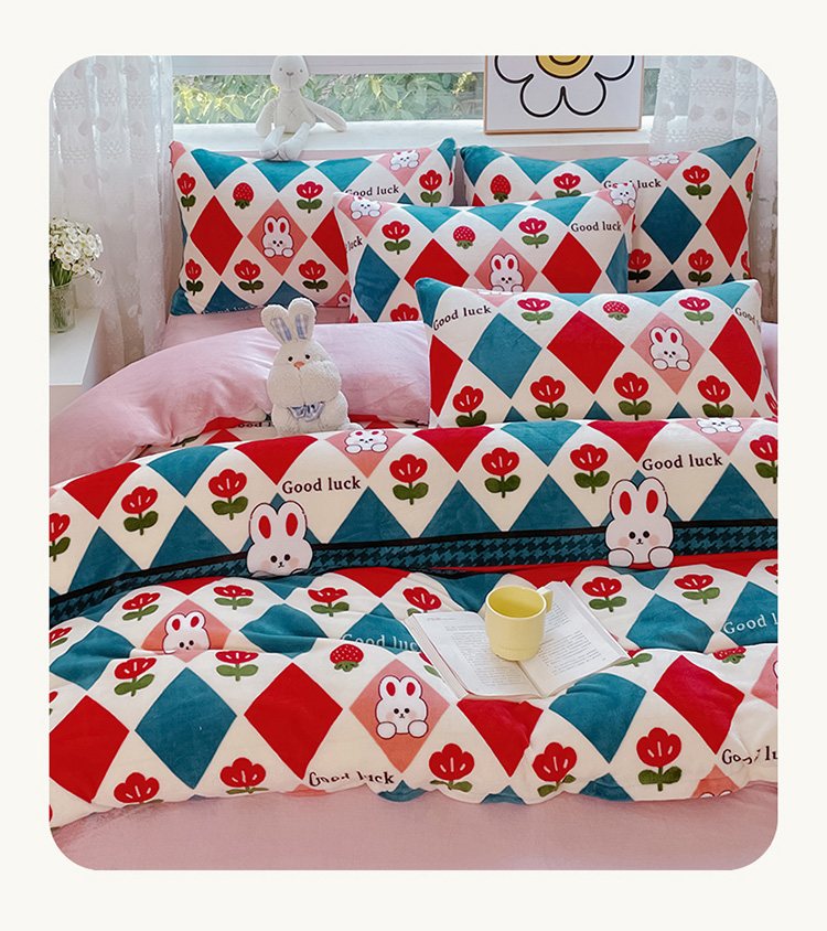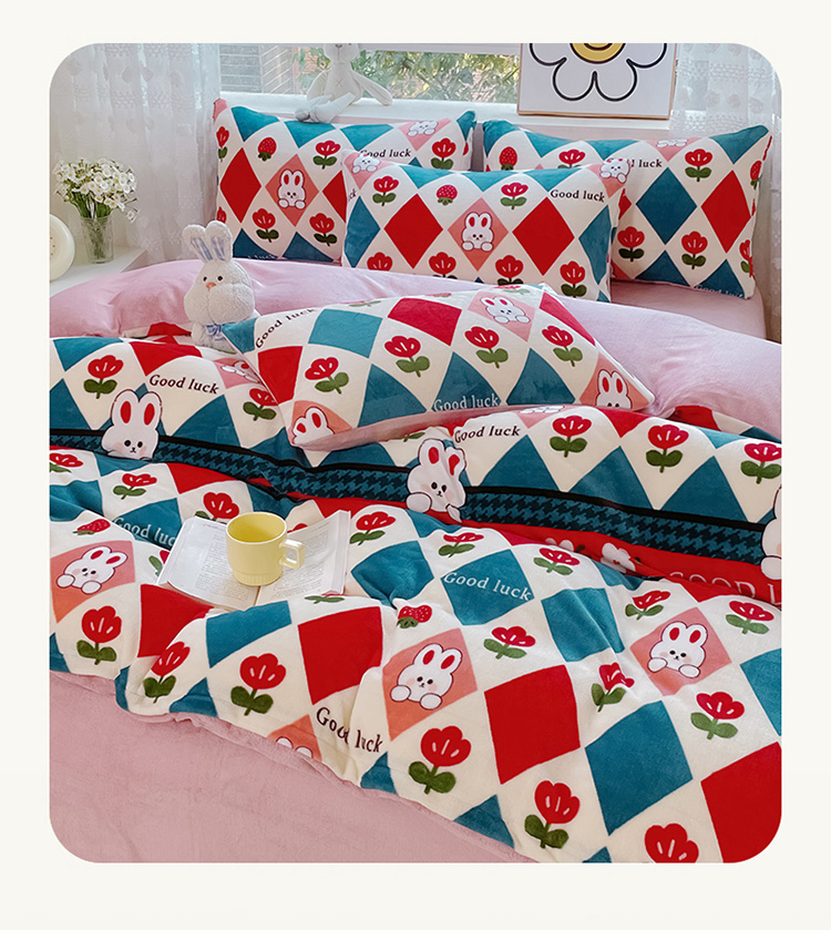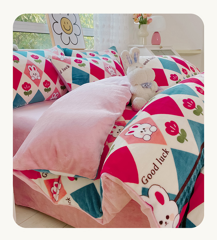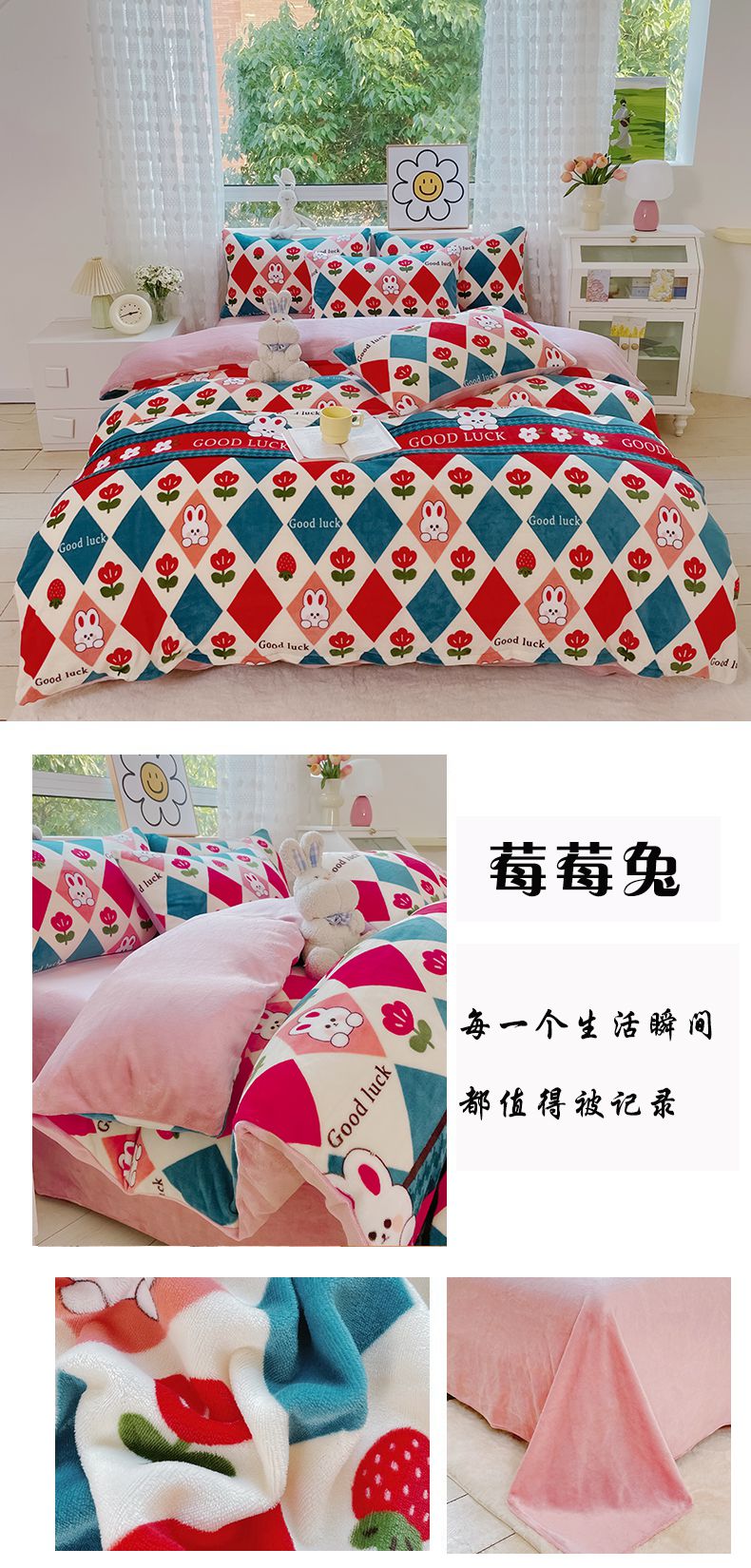 当前位置: 91家纺网 > 商品网购 > 床品套件 > 四件套 > 牛奶绒四件套 > (买家秀 爆款不断货)A类母婴级双面牛奶绒四件套珊瑚绒四件套雪花绒四件套儿童高克重卡通牛奶绒四件套 莓莓兔