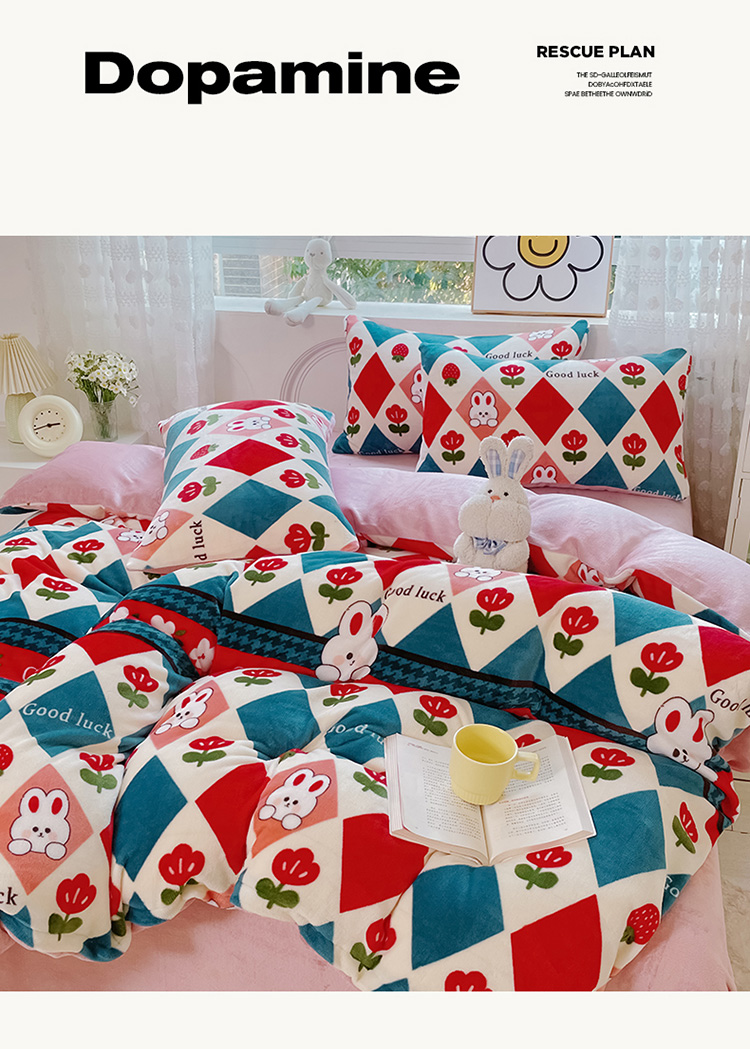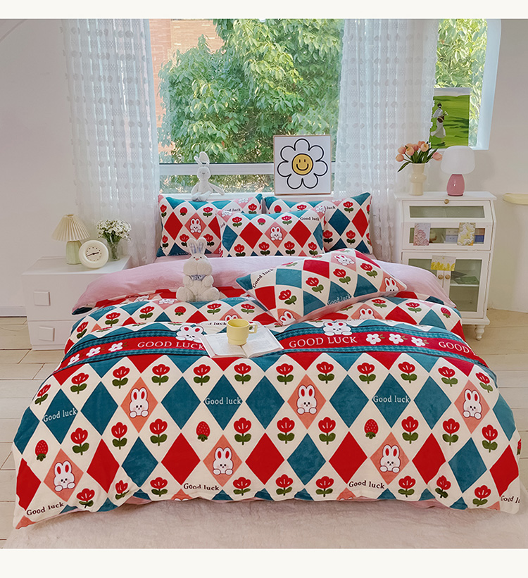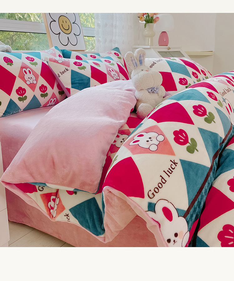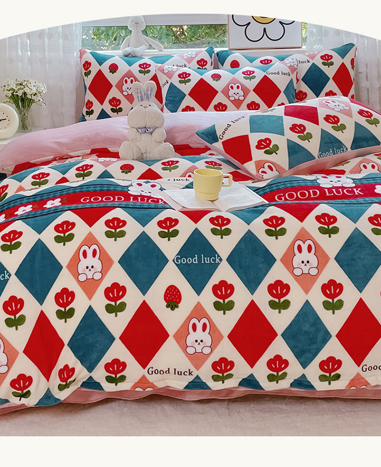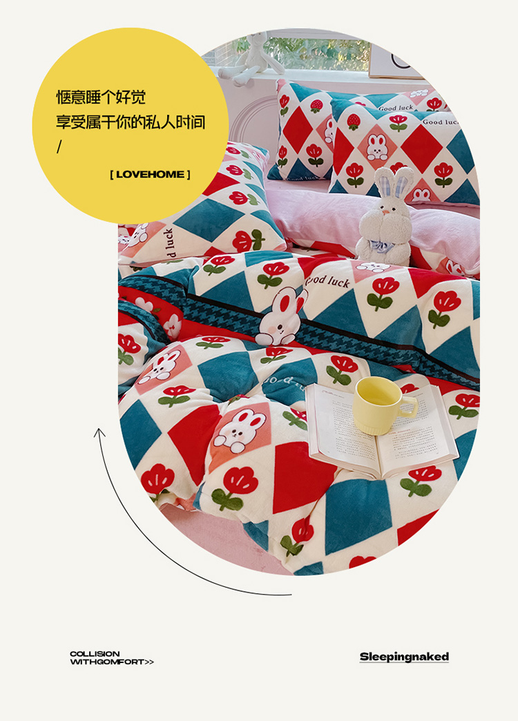 当前位置: 91家纺网 > 商品网购 > 床品套件 > 四件套 > 牛奶绒四件套 > (买家秀 爆款不断货)A类母婴级双面牛奶绒四件套珊瑚绒四件套雪花绒四件套儿童高克重卡通牛奶绒四件套 莓莓兔