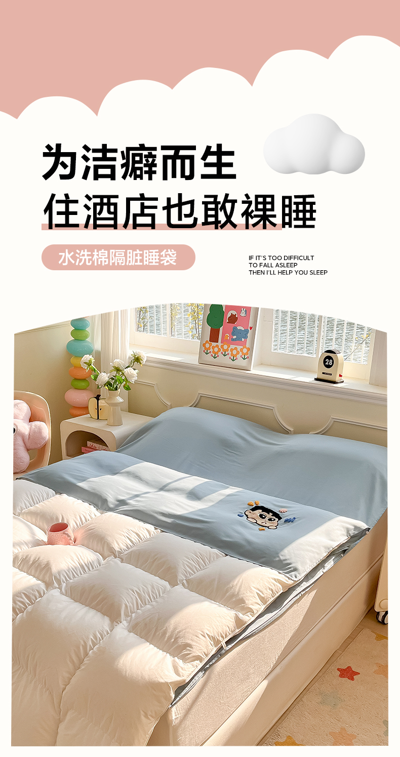(总)柒星睡袋 2025新款a类水洗毛巾绣一次性隔脏睡袋,巴萨熊蓝,巴萨熊浅粉,巴萨熊紫,布布米白,布布浅粉,布布紫,腊肠狗米白,腊肠狗浅灰,腊肠狗驼色,小新豆绿,小新蓝,小新浅灰