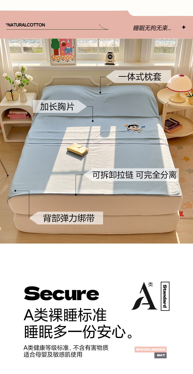 (总)柒星睡袋 2023新款A类棉小竺差旅神器火车卧铺酒店旅行隔脏睡袋,粉,灰,蓝,绿,紫