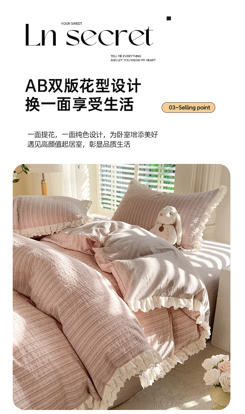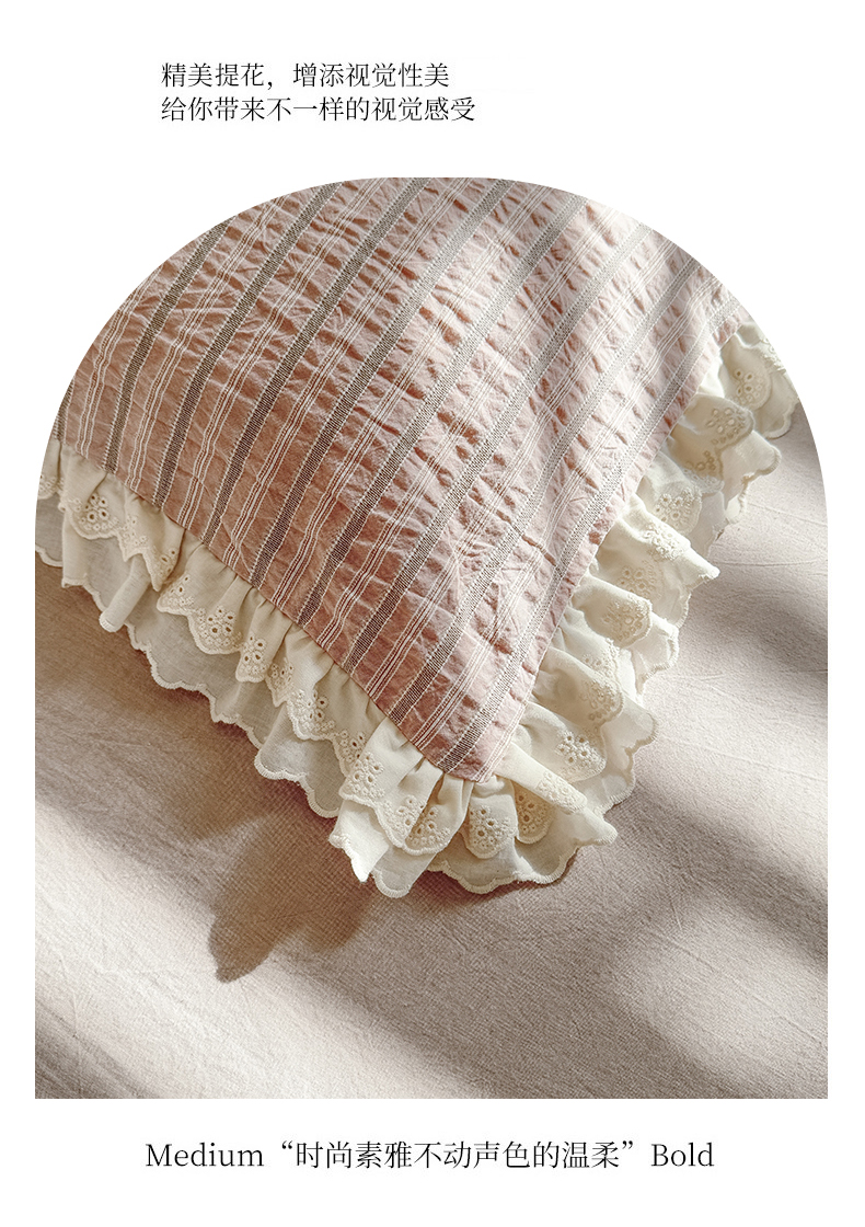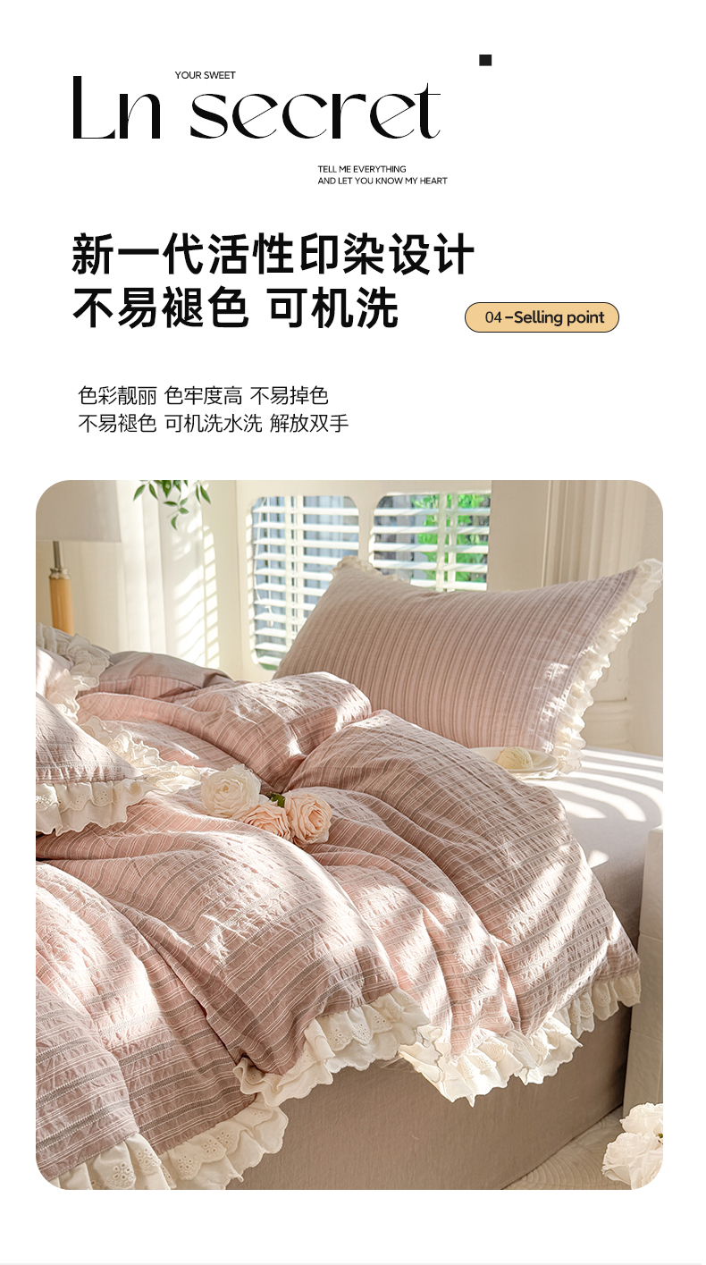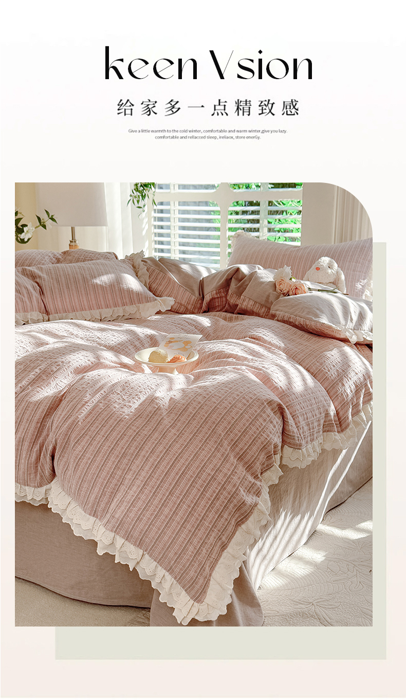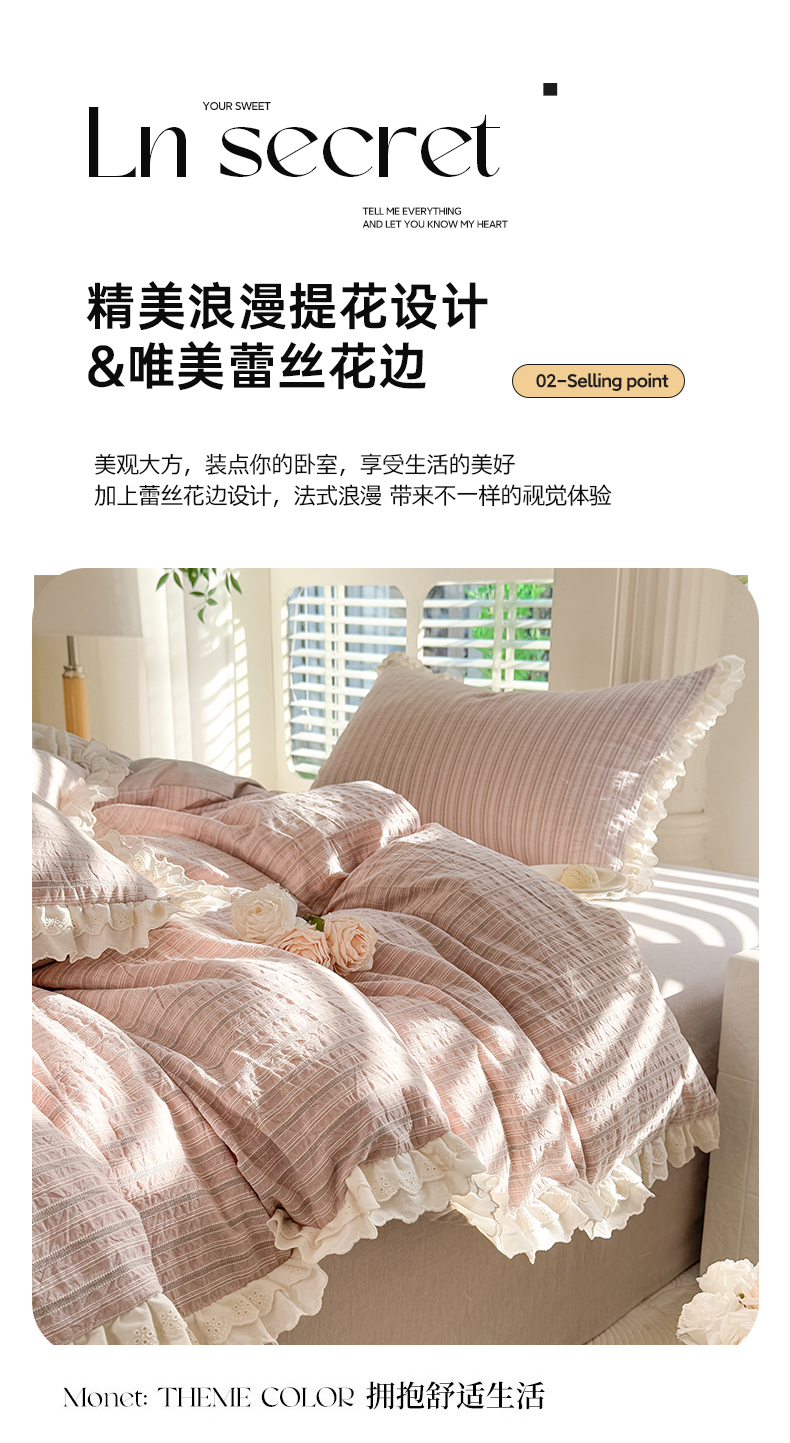 (总)棉小二 2025新款全棉色织提花水洗棉花边四件套-漫时光,漫时光-粉,漫时光-黄,漫时光-蓝,漫时光-紫