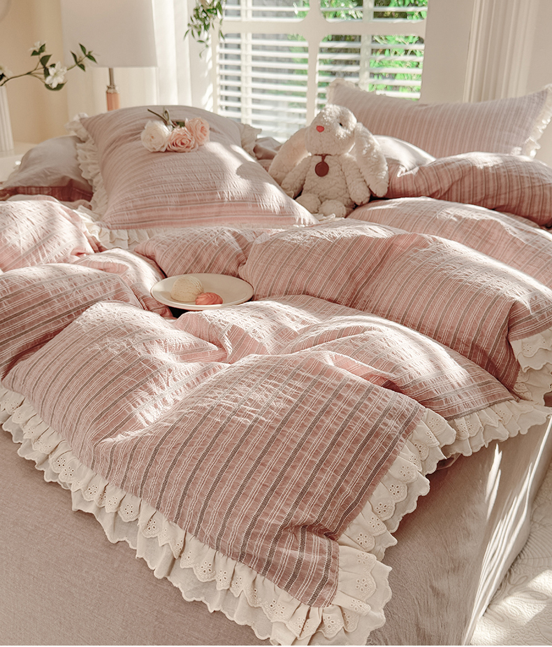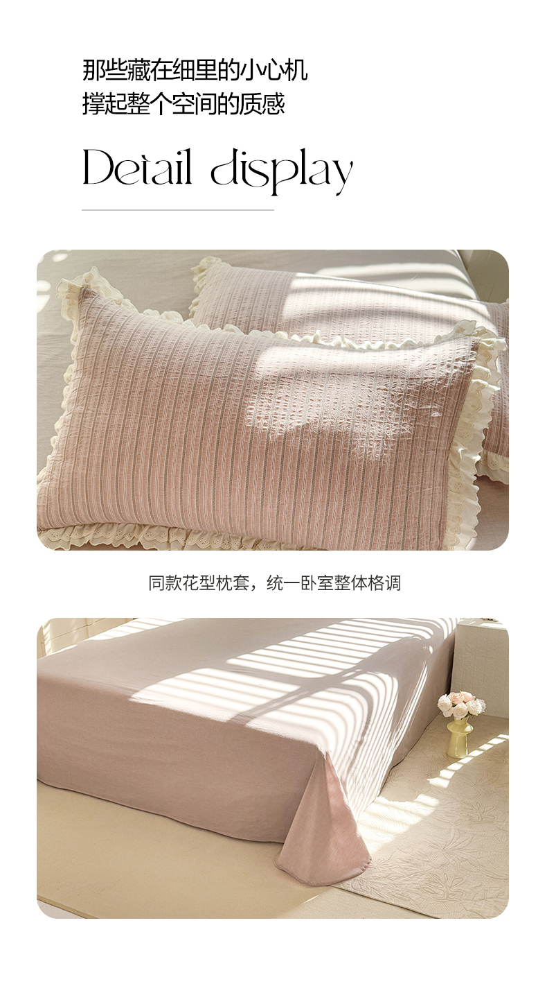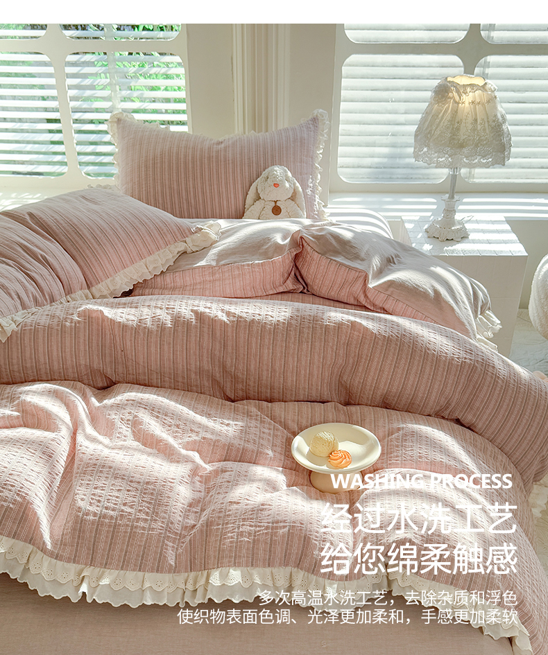 商品名称:棉小二 2025新款全棉色织花边提花水洗棉四件套-麦香 麦香-粉色