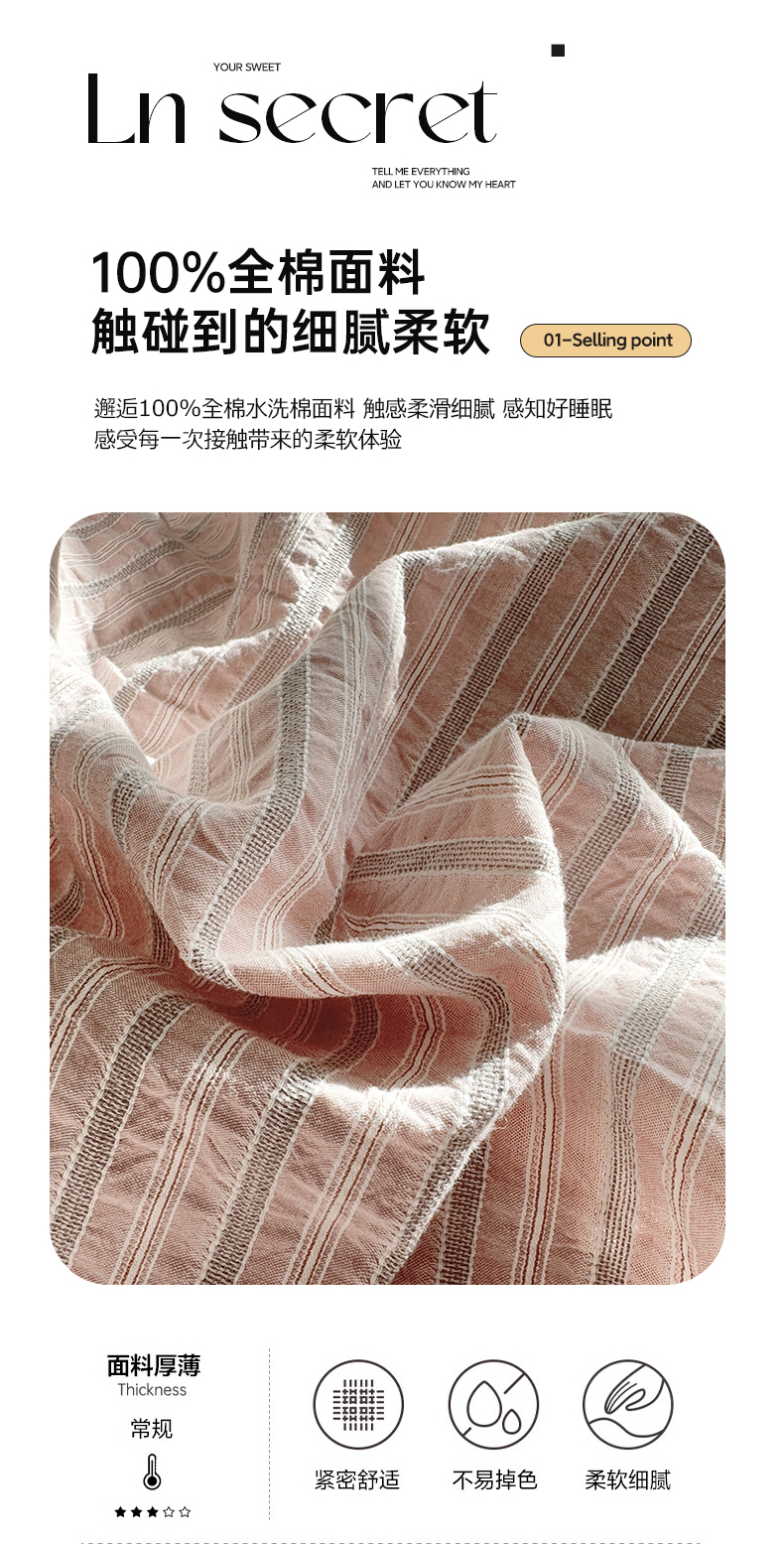 (总)棉小二 2025新款全棉色织条纹双层纱四件套,条纹白,条纹咖,条纹驼