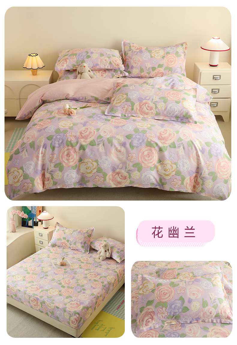 八十八家纺 2025新款全棉12868床笠款四件套花幽兰