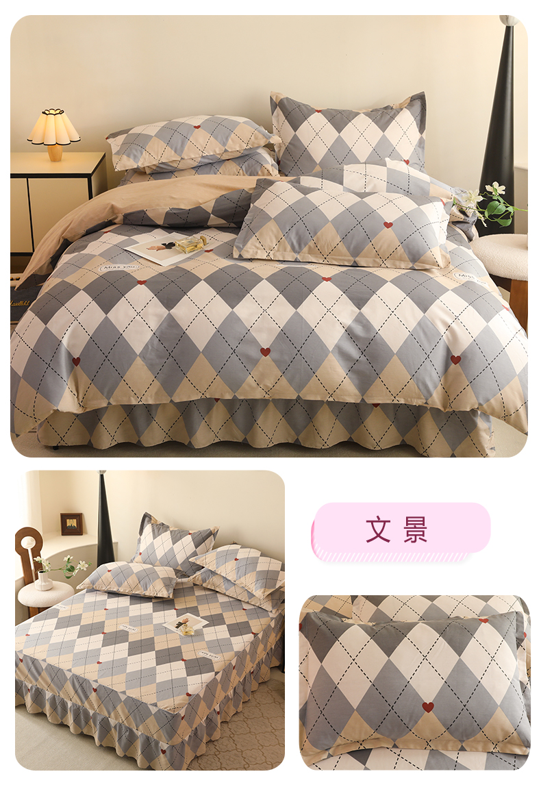 当前位置: 91家纺网 > 商品网购 > 床品套件 > 四件套 > 全棉普通四件套 > 八十八家纺 2025新款全棉12868床裙款四件套文景