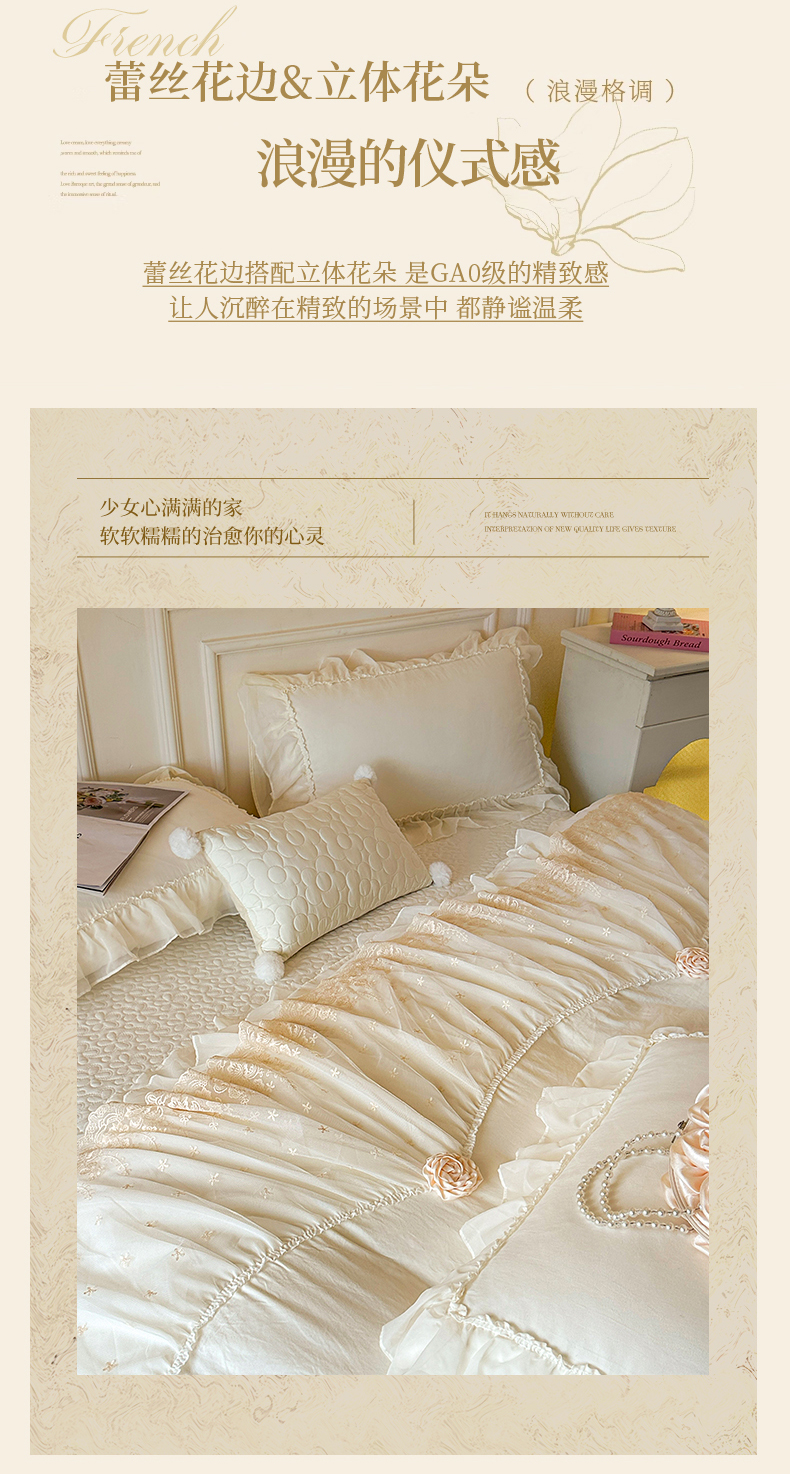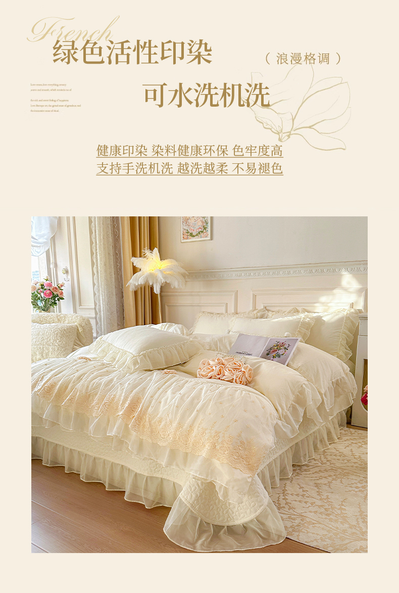 (总)富米莱(原臻工厂) 2026新款法式大花边A类古法仿棉云感纱床盖床裙四件套,大花边-爱心樱桃,大花边-粉花柔卧,大花边-粉樱kt,大花边-好运木马,大花边-花梦蔓,大花边-花意飘香,大花边-焦糖玫瑰,大花边-南瓜格韵,大花边-浅绿春韵,大花边-雾灰蔷薇,大花边-小幸运,大花边-鱼多多,大花边-紫韵花漾