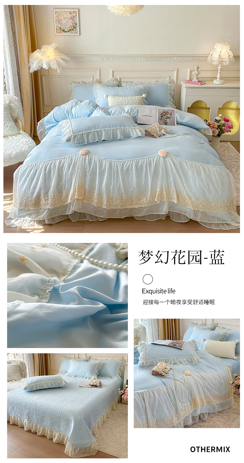 臻工厂2025 法式高端床盖水洗棉四件套 梦幻花园-蓝