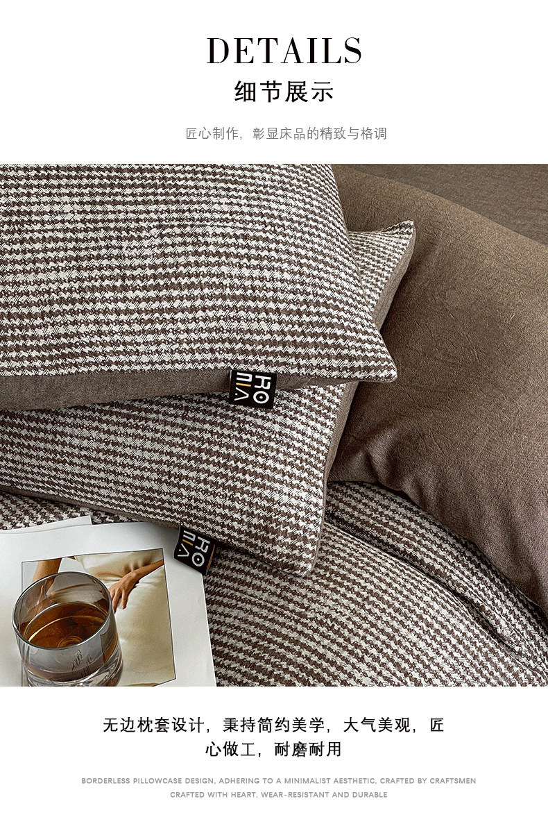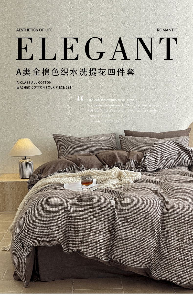 618家纺 2025新款全棉色织水洗大提花纯棉长绒棉四件套-简雅 简雅-橄榄棕