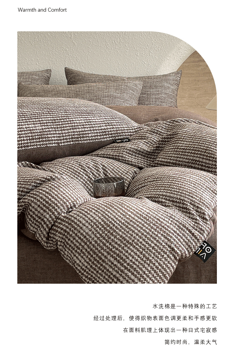 商品名称:618家纺 2025新款全棉色织水洗大提花纯棉长绒棉四件套-简雅 简雅-橄榄棕
