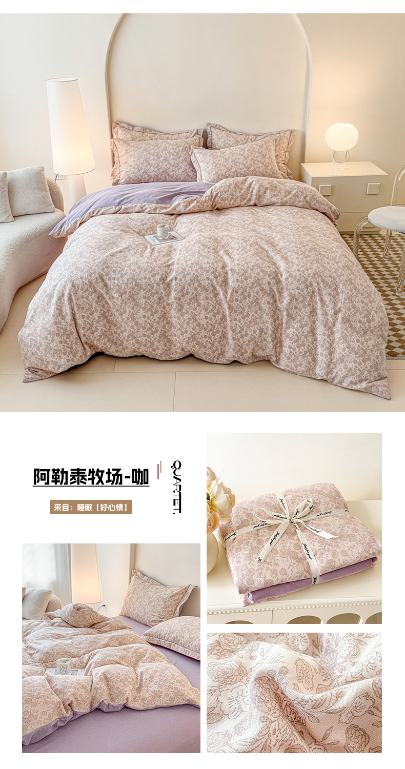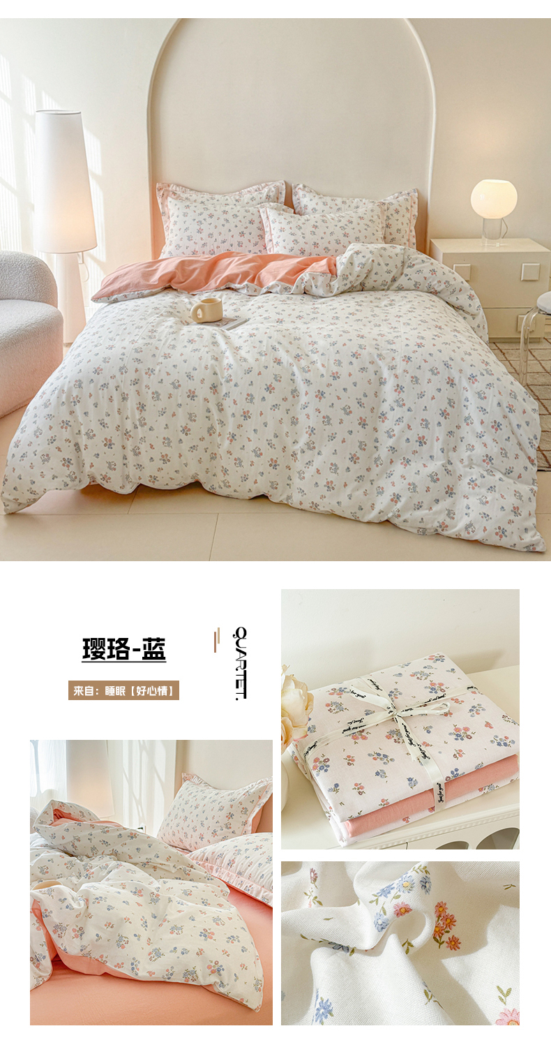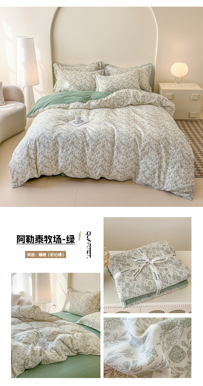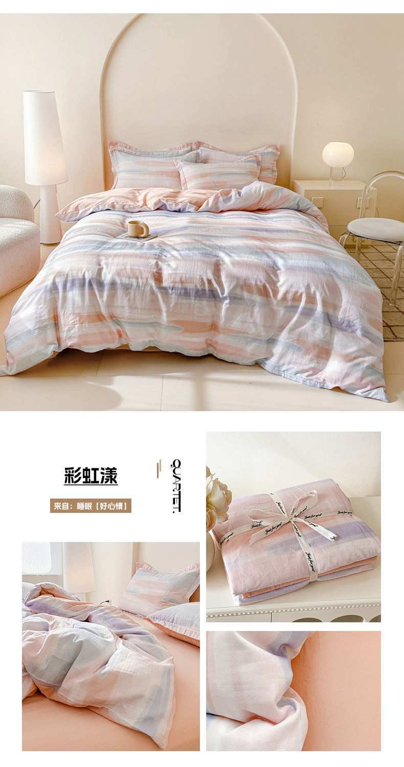 (总)喜四方 2025新款全棉A类母婴级抗菌全棉双层纱四件套