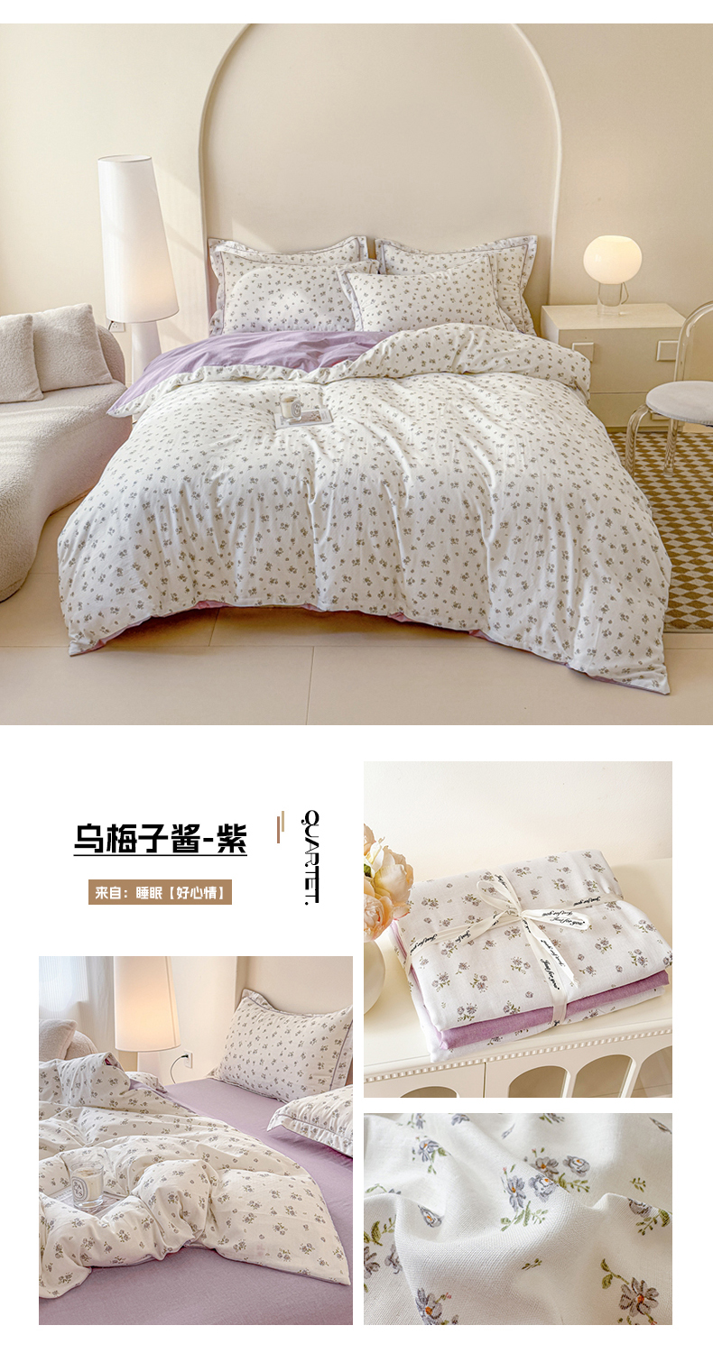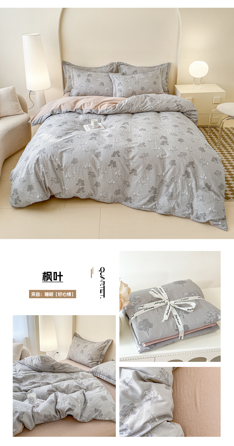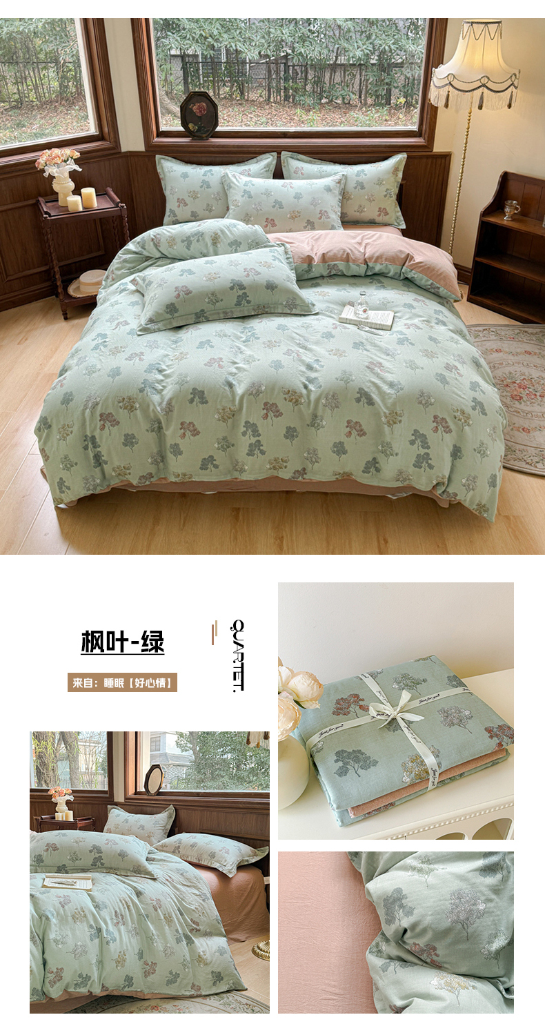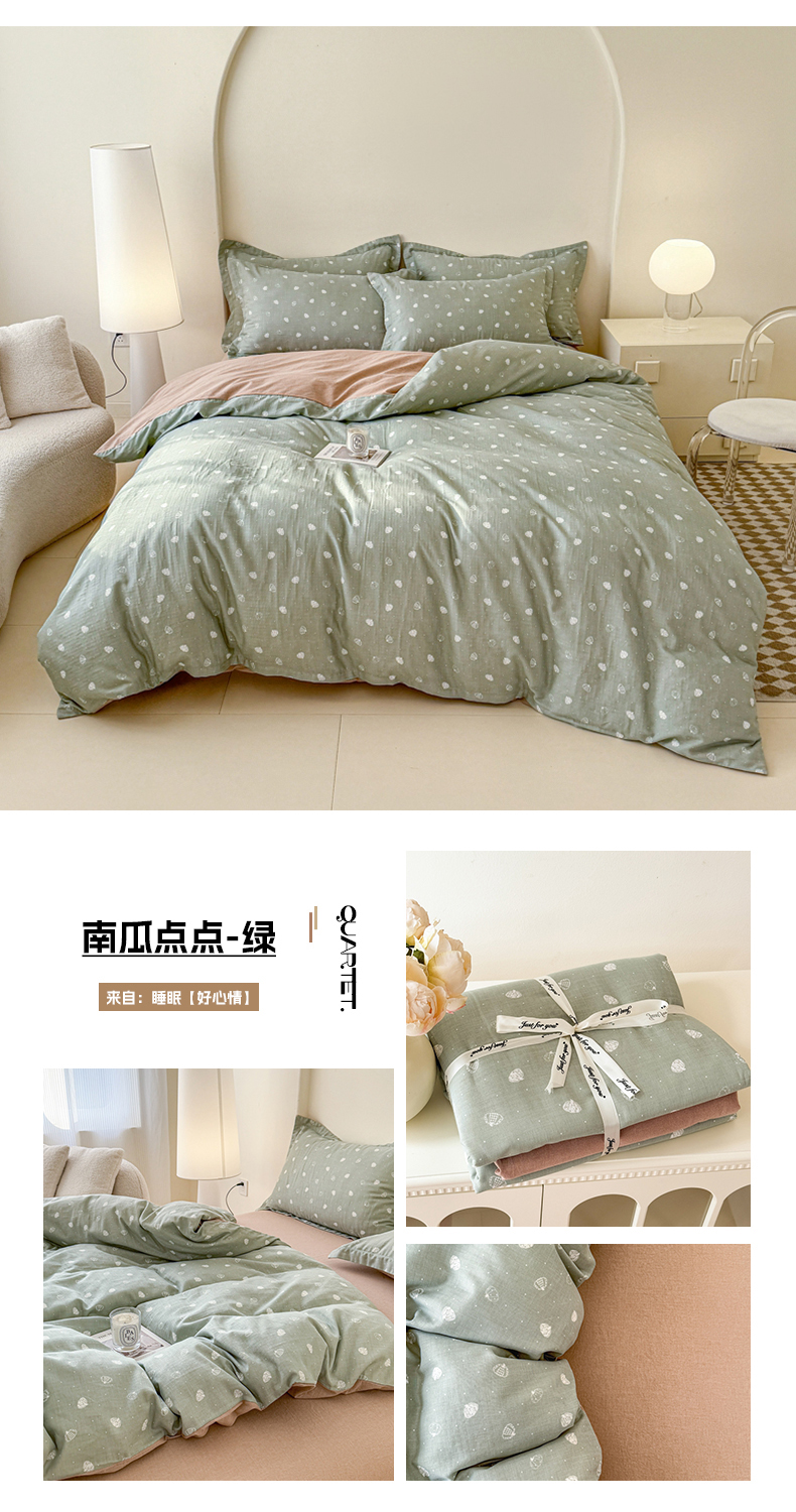 (总)喜四方 2025新款全棉A类母婴级抗菌全棉双层纱四件套