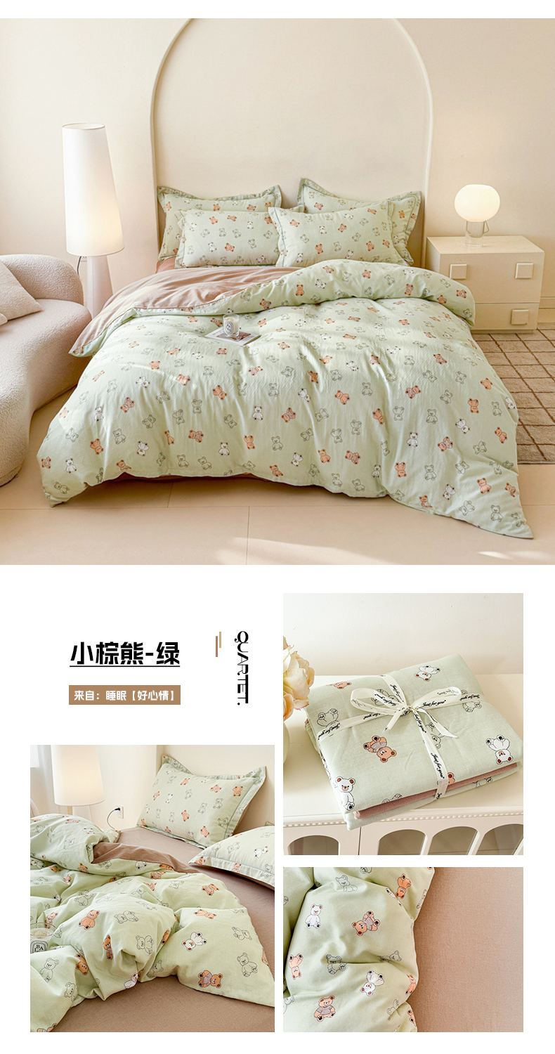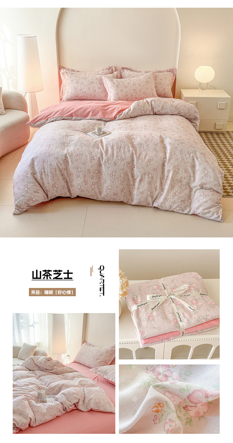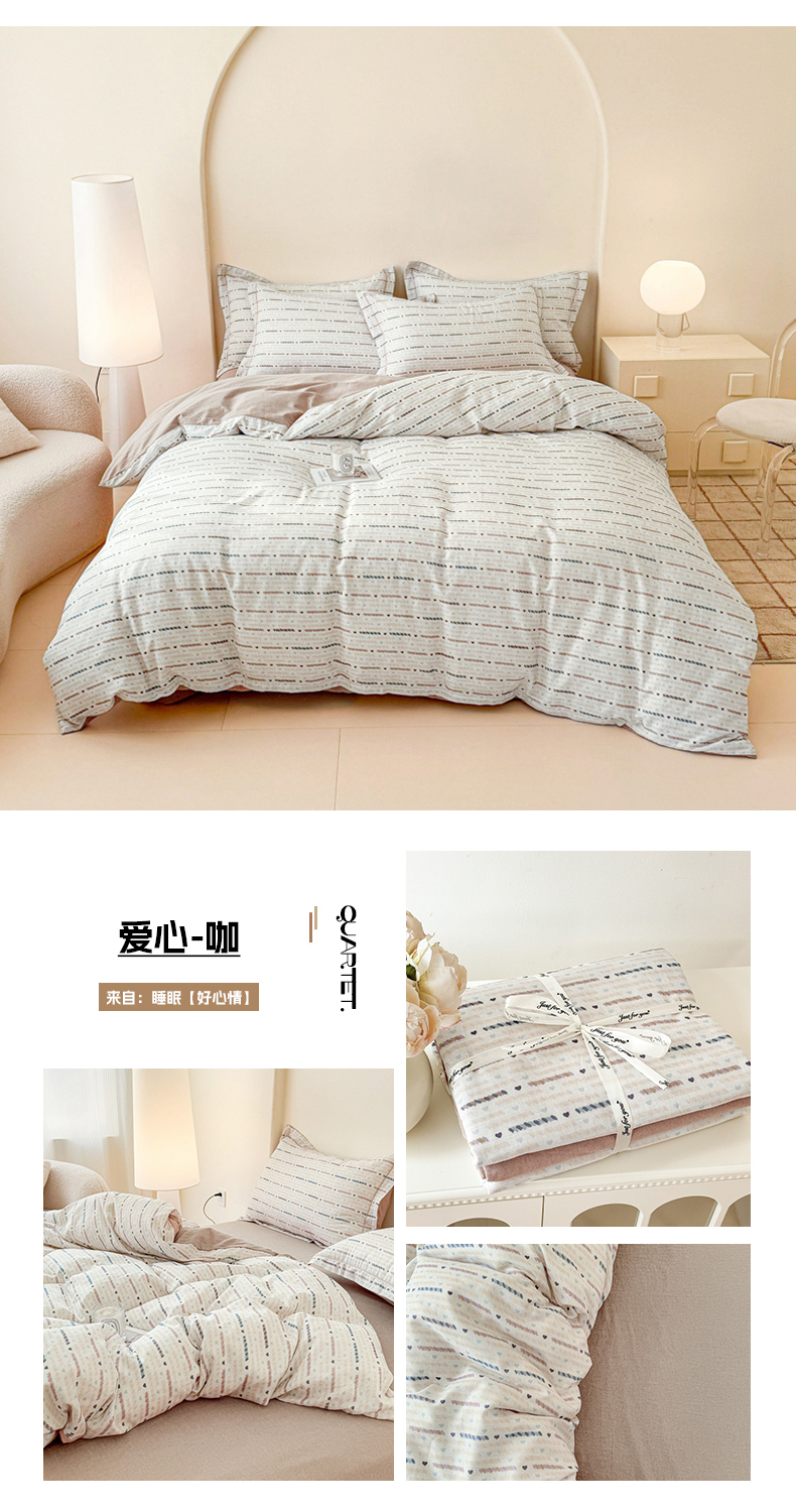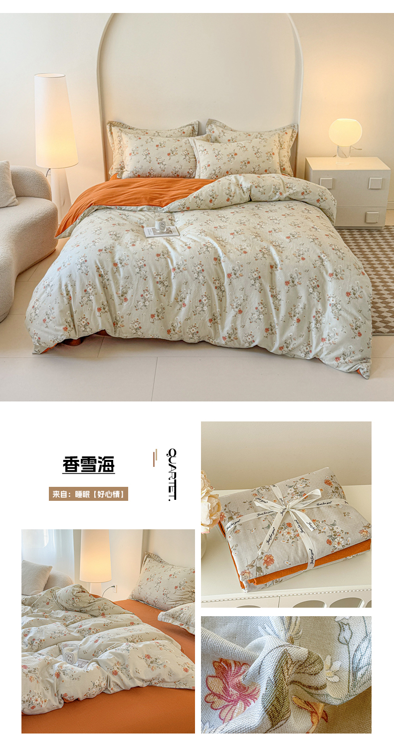 (总)喜四方 2025新款全棉A类母婴级抗菌全棉双层纱四件套