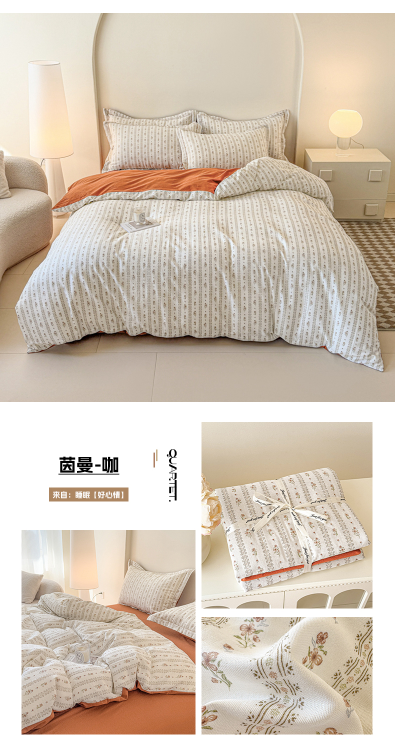 商品名称:(总)喜四方 2025新款全棉A类母婴级抗菌全棉双层纱四件套
