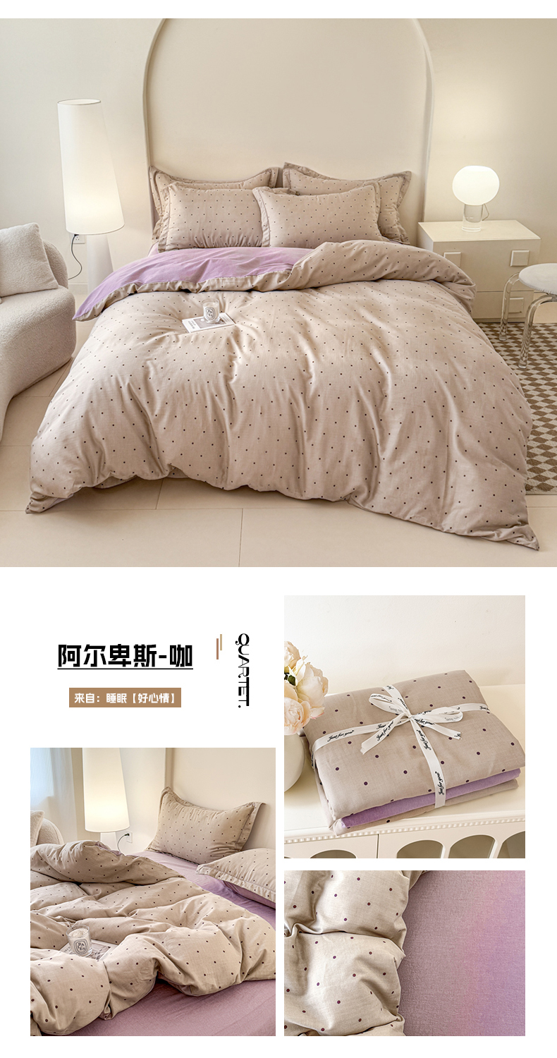 喜四方 2024新款全棉磨毛全棉印花四件套曼迪-紫,曼迪-紫