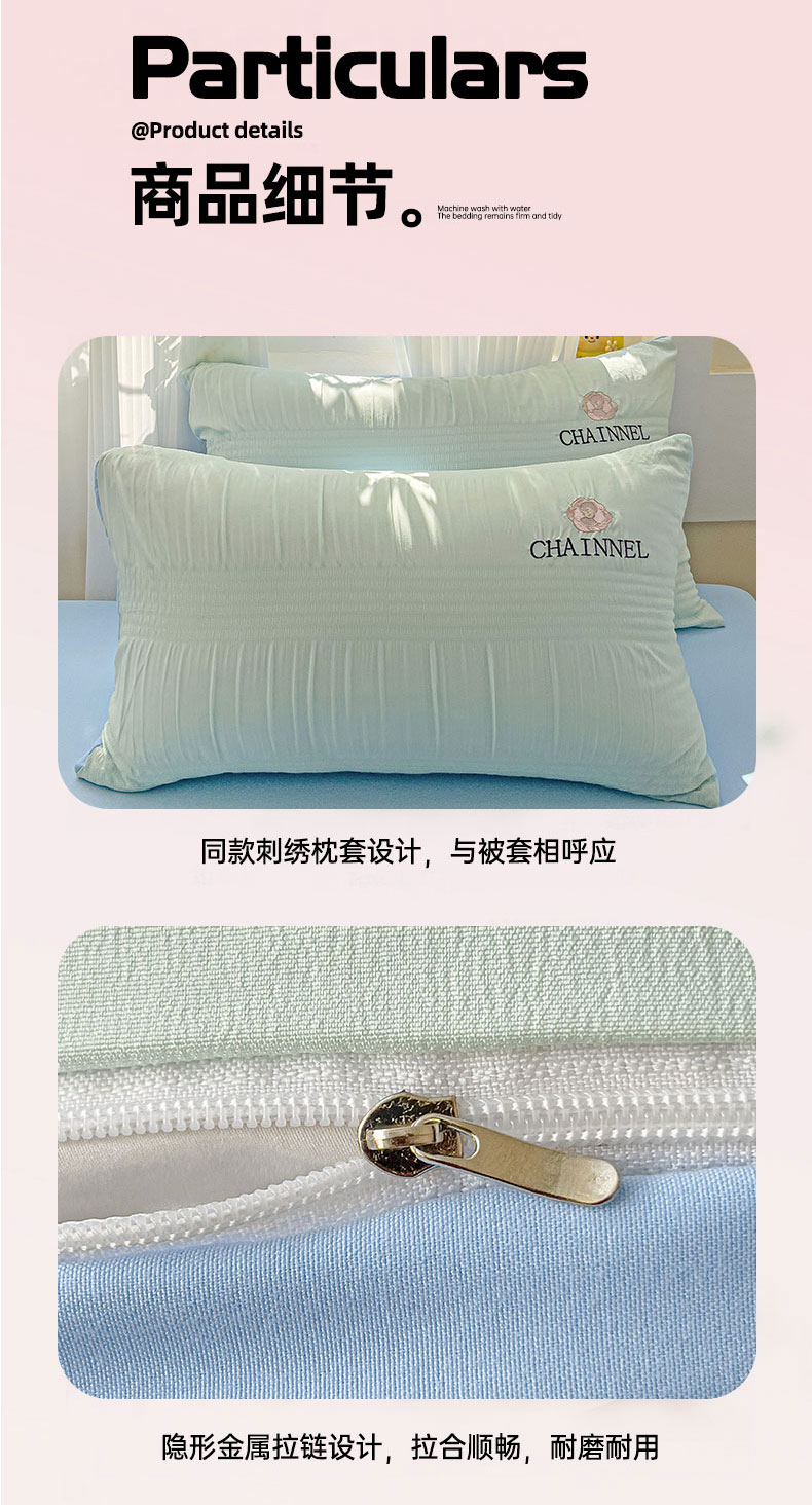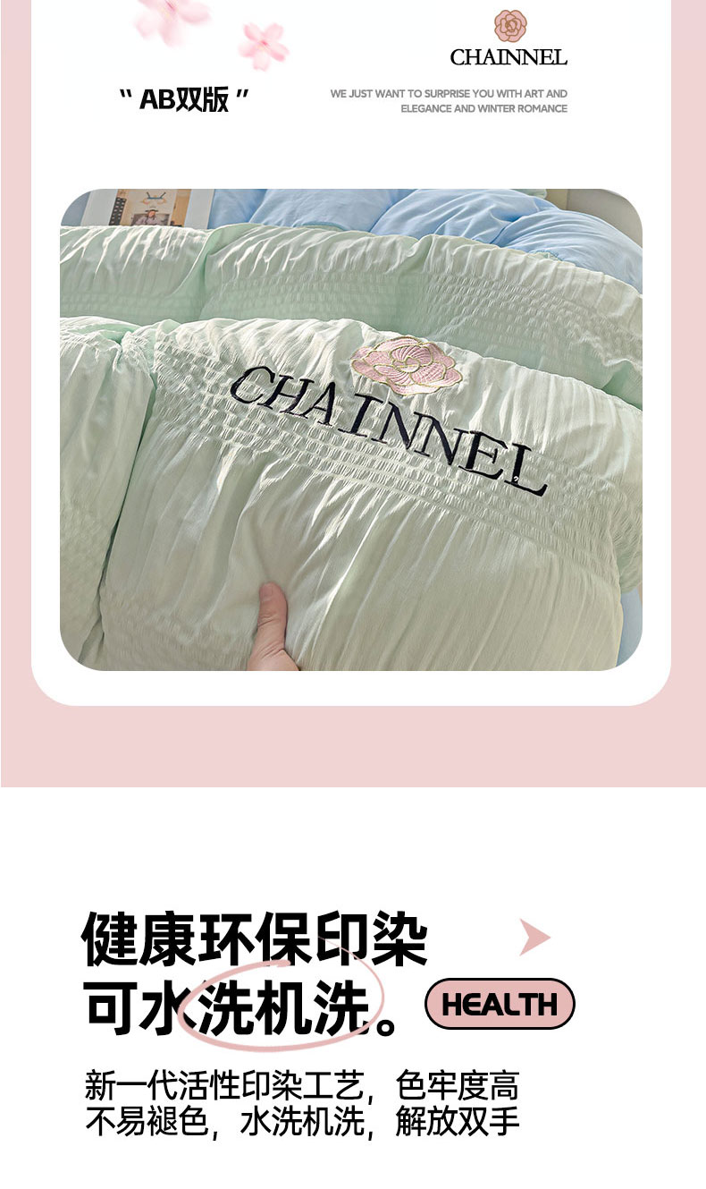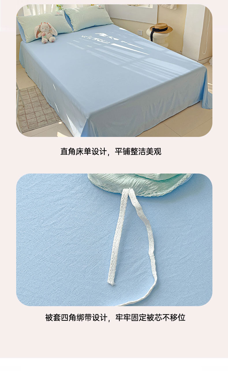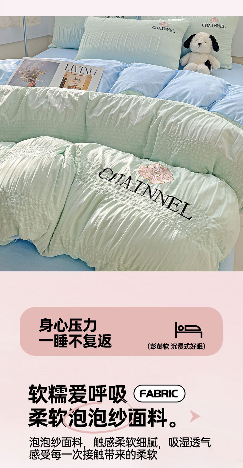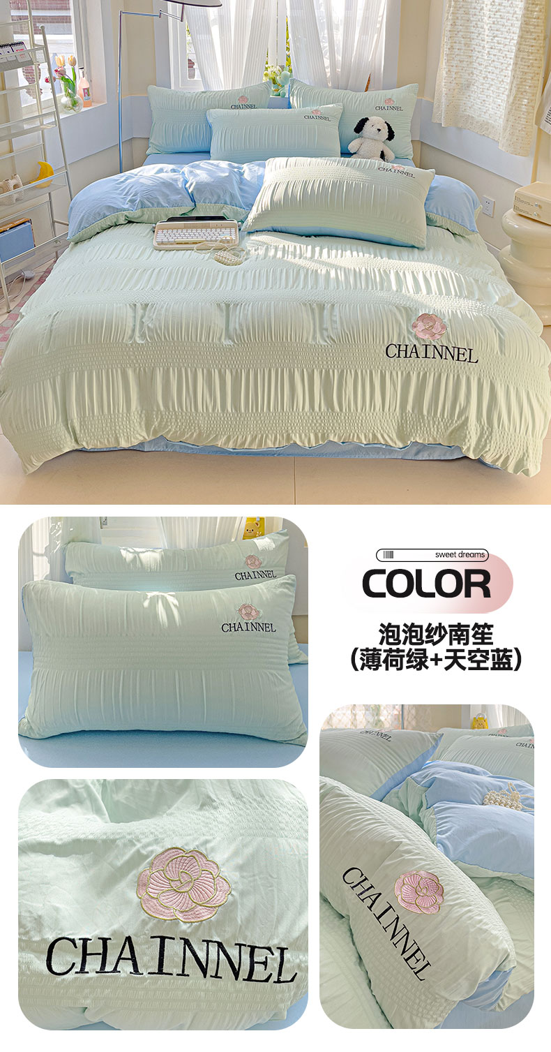 当前位置: 91家纺网 > 商品网购 > 床品套件 > 四件套 > 其它四件套 > 灰鲸 2025新款泡泡纱系列南笙刺绣四件套 泡泡纱南笙-薄荷绿+天空蓝