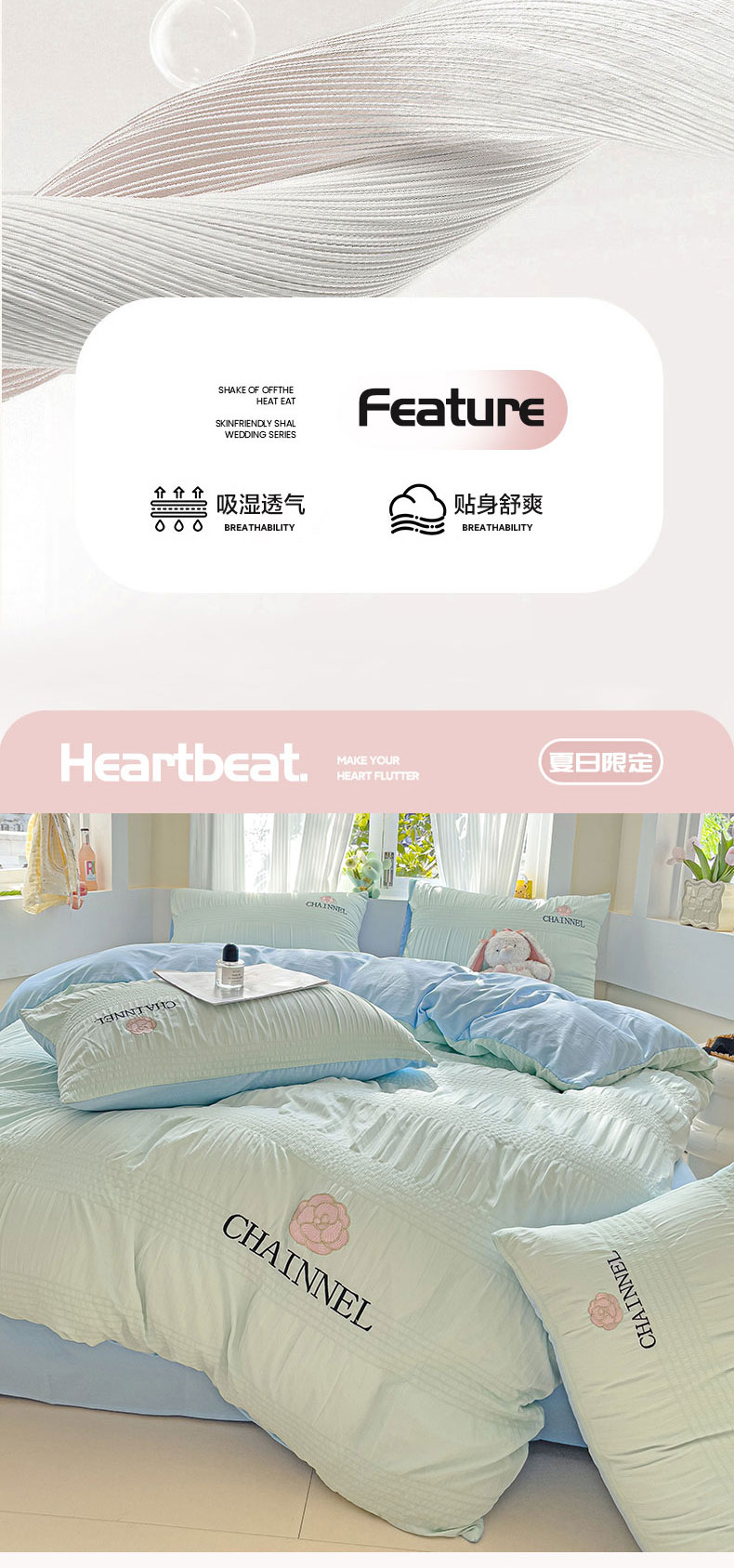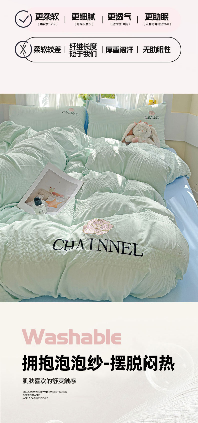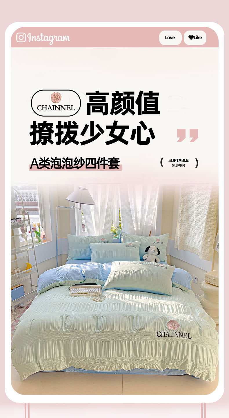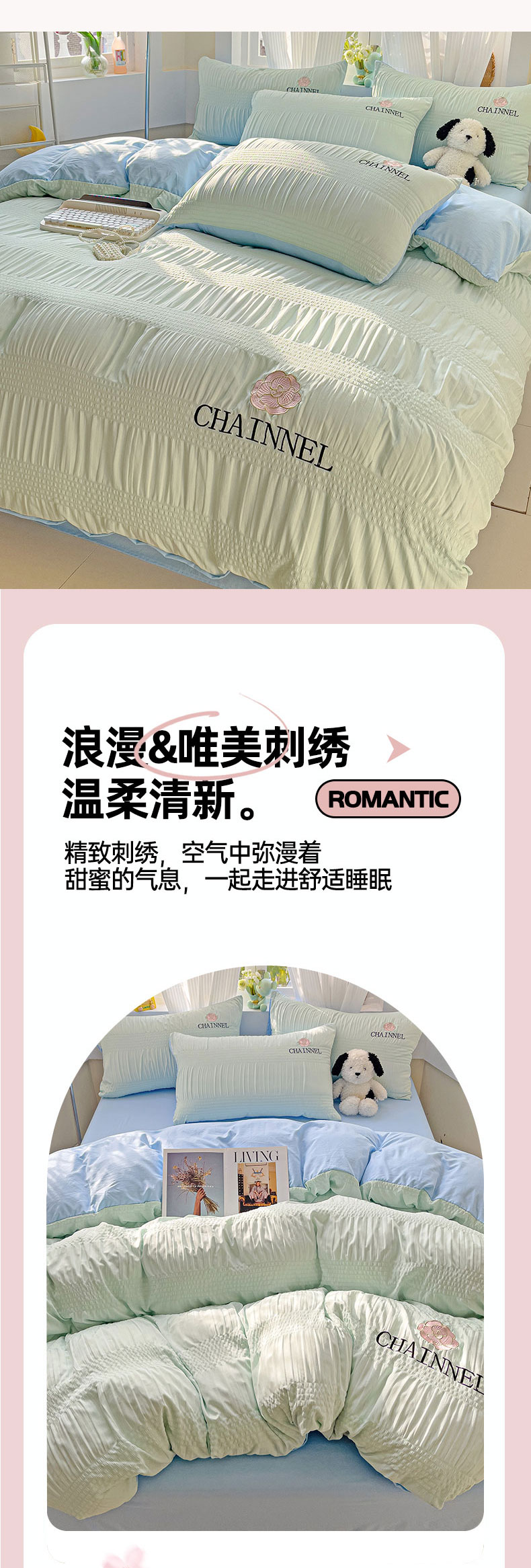 当前位置: 91家纺网 > 商品网购 > 床品套件 > 四件套 > 其它四件套 > 灰鲸 2025新款泡泡纱系列南笙刺绣四件套 泡泡纱南笙-薄荷绿+天空蓝