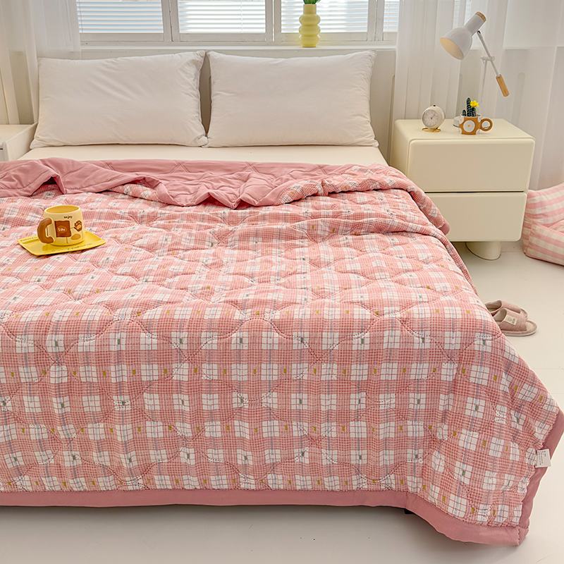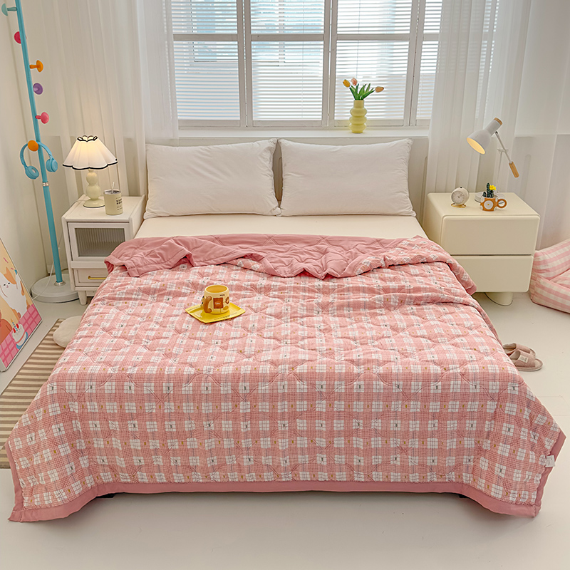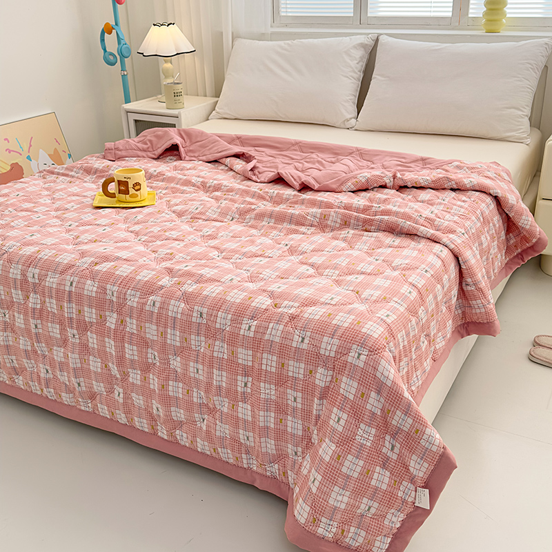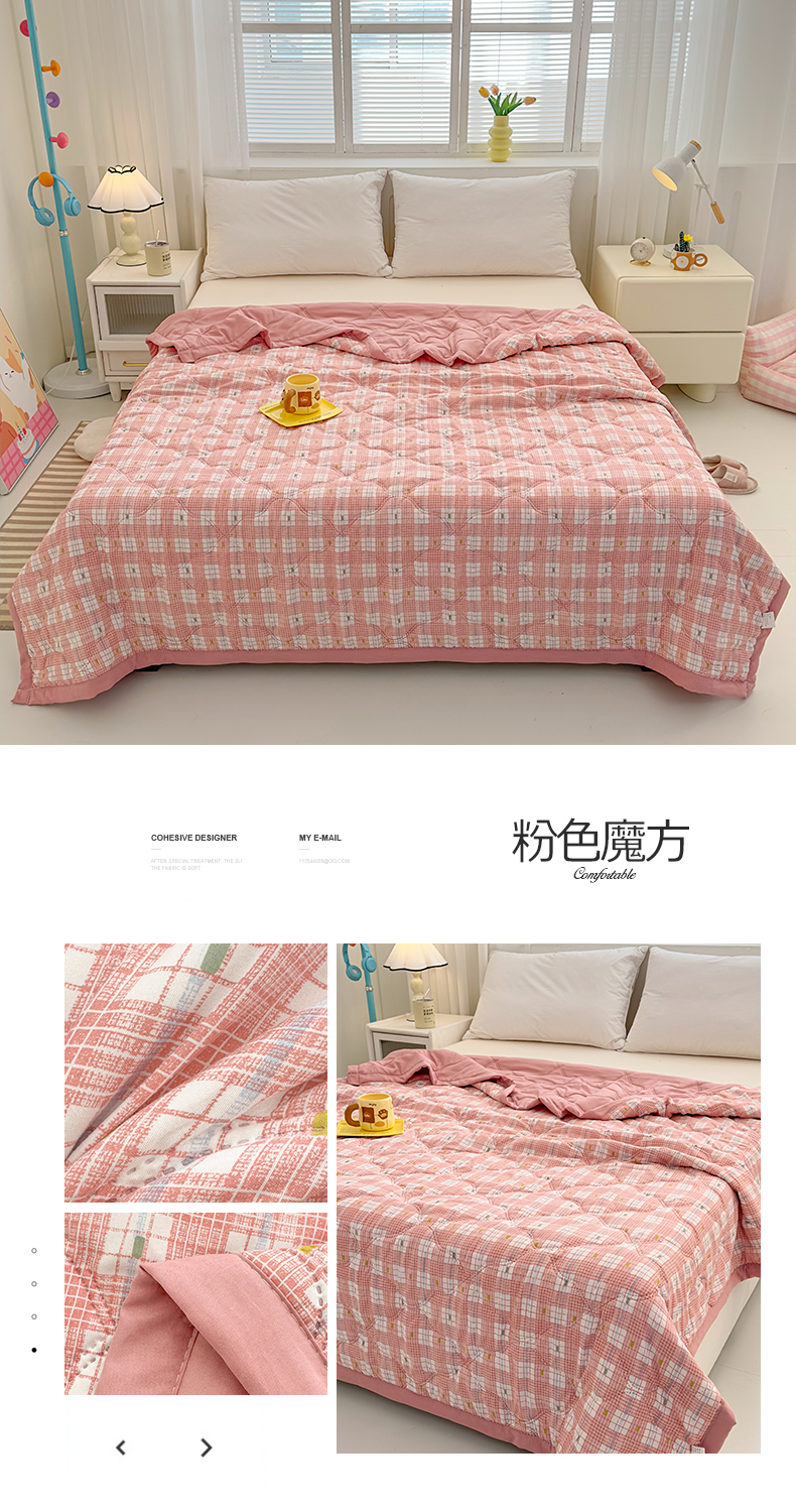商品名称:悦织湾2025新款亲肤水洗棉夏被印花纯色升级版芦荟棉夏凉被空调被跑量款 印花-粉色魔方